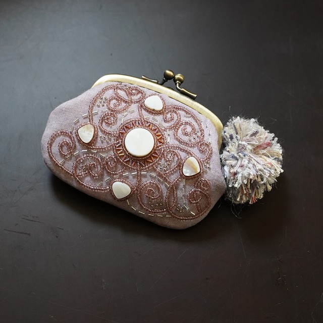子どもの頃から民族衣装や異国の小物が好きで、特に手刺繍の施されたものを調べたり集めたりしてきました。 独特の色彩に不思議な模様。それが何を現しているのか、どうしてその模様を思いついたのか。眺めて考える時間が今も大好きです。 もし私がどこかの国の少数民族の一人だったら、どんな刺繍をするだろうか?自分の人生や生活からイメージを得て作ったらどんなものができるかな?と考え刺繍をしました。 どこにも無い、誰とも被らない完全一点ものです。 バッグから取り出したら「それ、どこの?」と聞かれることでしょう。 どこのブランド?どこの国の?どこで買ったの? どんな意味の「どこの?」が飛び出すでしょうか? アクセサリーや薬、飴や小銭などちょっとしたものを入れるのに丁度いいサイズです。 仕切りが付いており中身がごっちゃになりません◎ 口が大きく開くので一目で中に何が入っているか分かります。浅めの作りになっているので手が入りやすく使いやすいです。 キルト芯を貼ったガーゼに糸やビーズで刺繍を施しました。 かわいい小さなポンポンが付いています。 ひとつひとつ丁寧に手仕事で仕上げた1点物です。 丈夫なポーチが活躍する日常も素敵ですが、 特別な日には、繊細な刺繍が施された小さながま口をそっとバッグに忍ばせたくなります。 バッグを開けるたび、ふと微笑んでしまうような— そんな願いを込めて、一針ずつ丁寧に仕立てました。 今日という一日が、少しだけ特別になりますように。そんな思いをこめた、どこか遠い国のお守りのような存在です。 バッグから取り出した瞬間、「それ、どこの?」と聞かれるかもしれません。 どこのブランド?どこの国?どこのお店?——どんな「どこの?」が飛び出すでしょうか? ↓仕切り付きがま口のバリエーションはこちらから https://tsukini.thebase.in/categories/5196686 プレゼントラッピングも承っております。 お急ぎの場合はお気軽にご相談ください。可能な限り対応いたします。 ◎仕様・素材 素材:ガーゼ、ビーズ等 全体サイズ:約11×7.5センチ(口金は含みません) 口金:アンティーク調(製造時の色むら・小傷あり) ちょっとした小物を入れて持ち歩くのにぴったりのサイズです。 ひとつひとつ、手仕事で丁寧に仕上げています。 ◎ラッピング・配送について 無料ラッピング承ります。ご希望の方はお気軽にお申し付けください。 複数ご注文の際、送料に若干の誤差が生じる場合がございます。予めご了承ください。 他サイトでも販売中のため、注文が重なった場合は先着順とさせていただきます。 ◎ご購入前にご確認ください 縫製と素材の特性上、口金まわりに細かなシワが出ることがあります。(画像をご確認ください) 使用に支障はありませんが、気になる方はご購入をお控えください。 口金には製造過程で生じる小傷や塗装のムラがあります。不良品ではございません。 モニター環境により、実物と色味が異なる場合があります。画像と完全に一致するものをお求めの方はご購入をお控えください。 素材の特性上、摩擦や水濡れにより毛羽立ちやビーズの退色が起こる場合があります。 ◎禁止事項 写真・文章の無断転載 作品の転売(パーツとしての使用も含む)