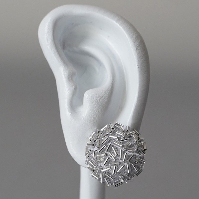 ピアス ばらまく 1 まる 竹ビーズ シルバー グレー サージカルステンレスピアス おおぶり 一点もの ビーズ刺繍
