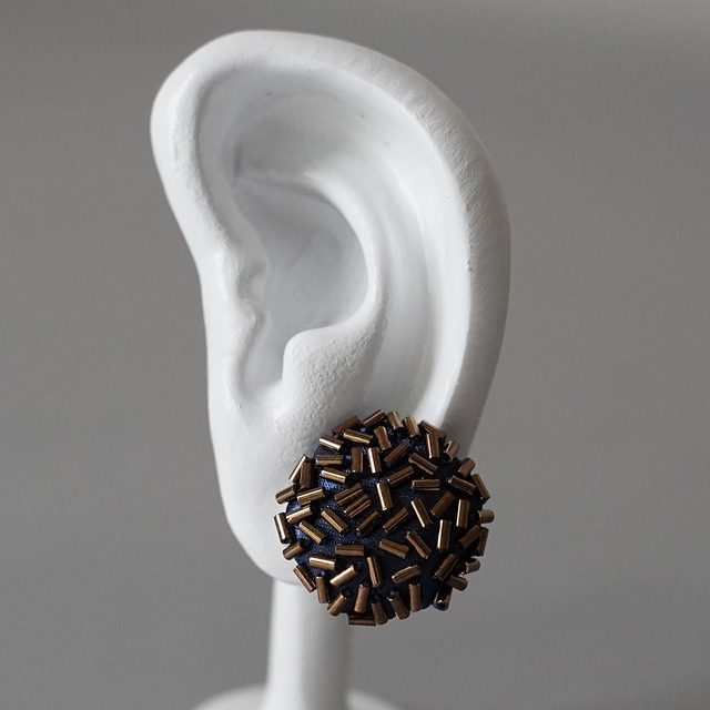 イヤリング ばらまく 4 まる 竹ビーズ ゴールド ネイビー ニッケルフリーイヤリング おおぶり 一点もの ビーズ刺繍