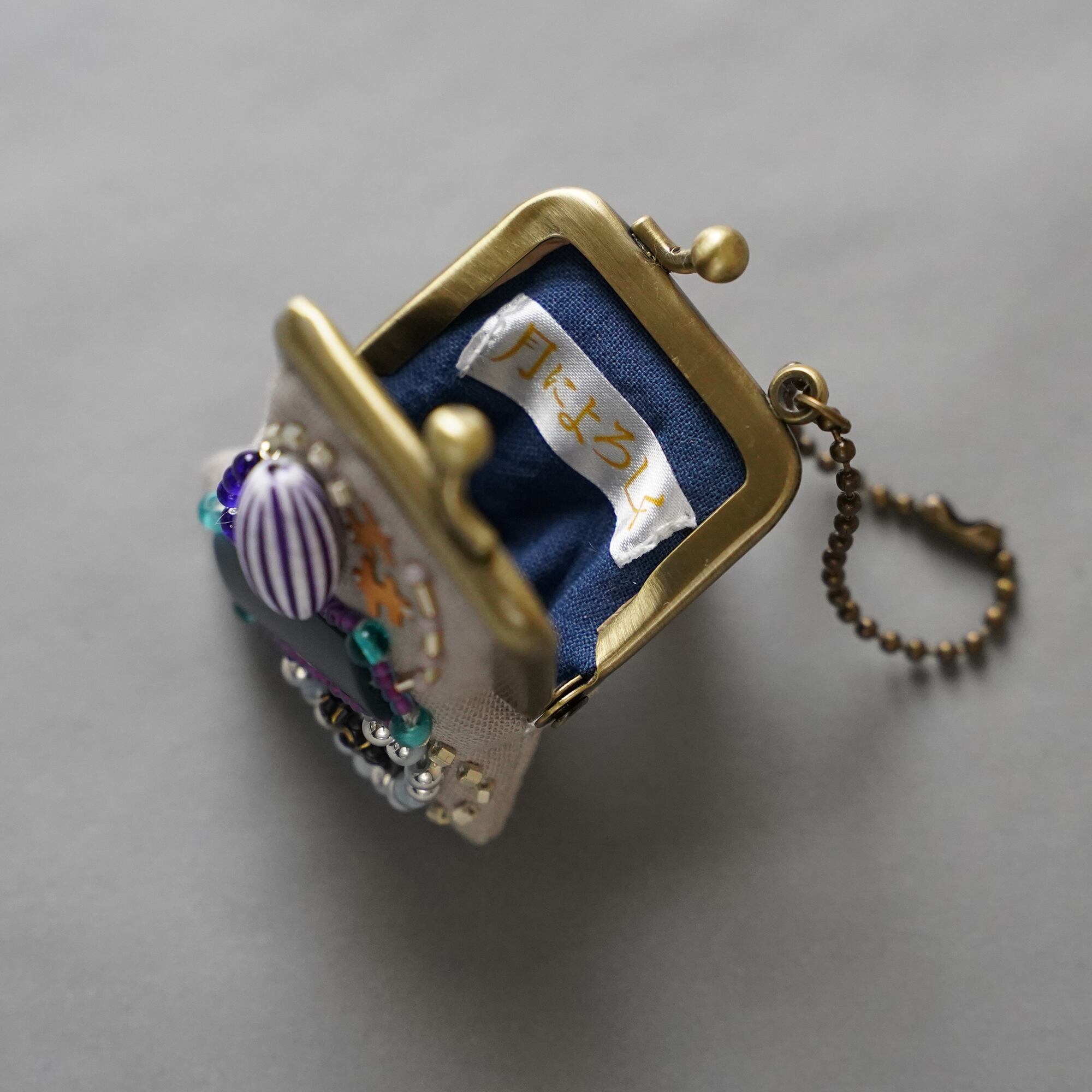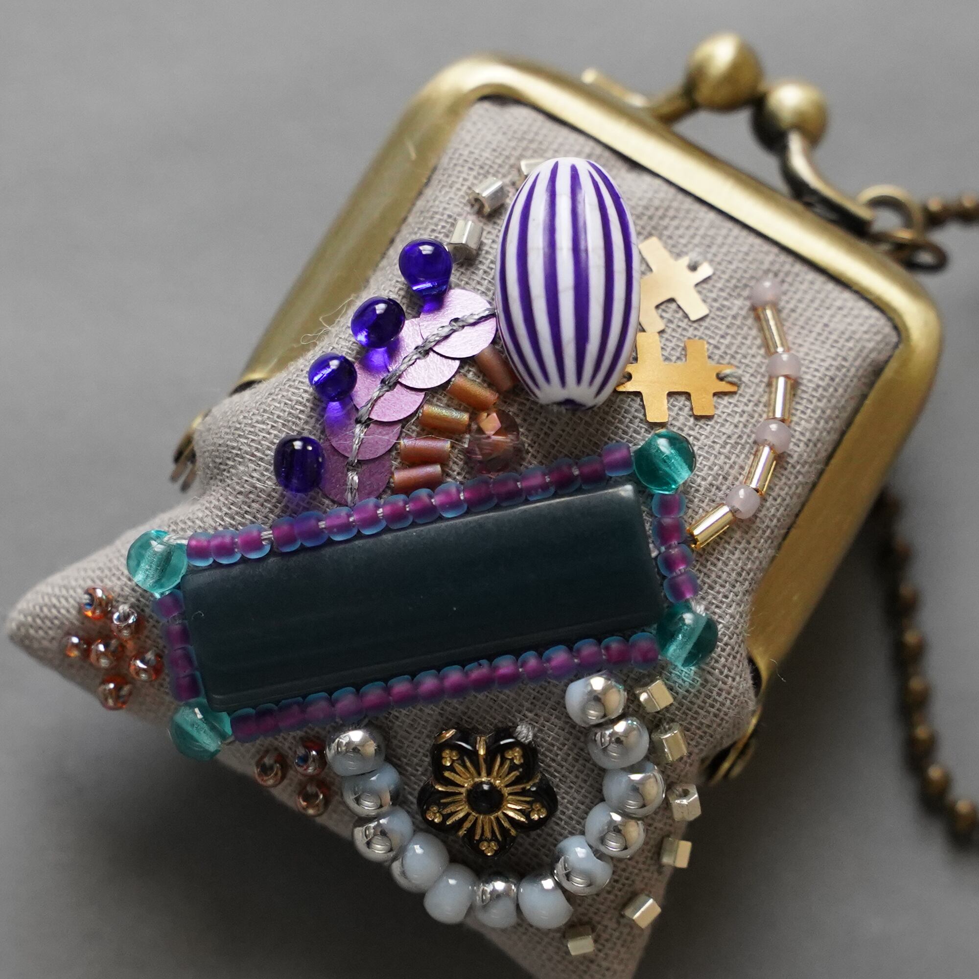 ネックレスにも、バッグチャームにも、小さな小さなビーズ刺繍のがま口 41 グレー プレゼント アクセサリーケース