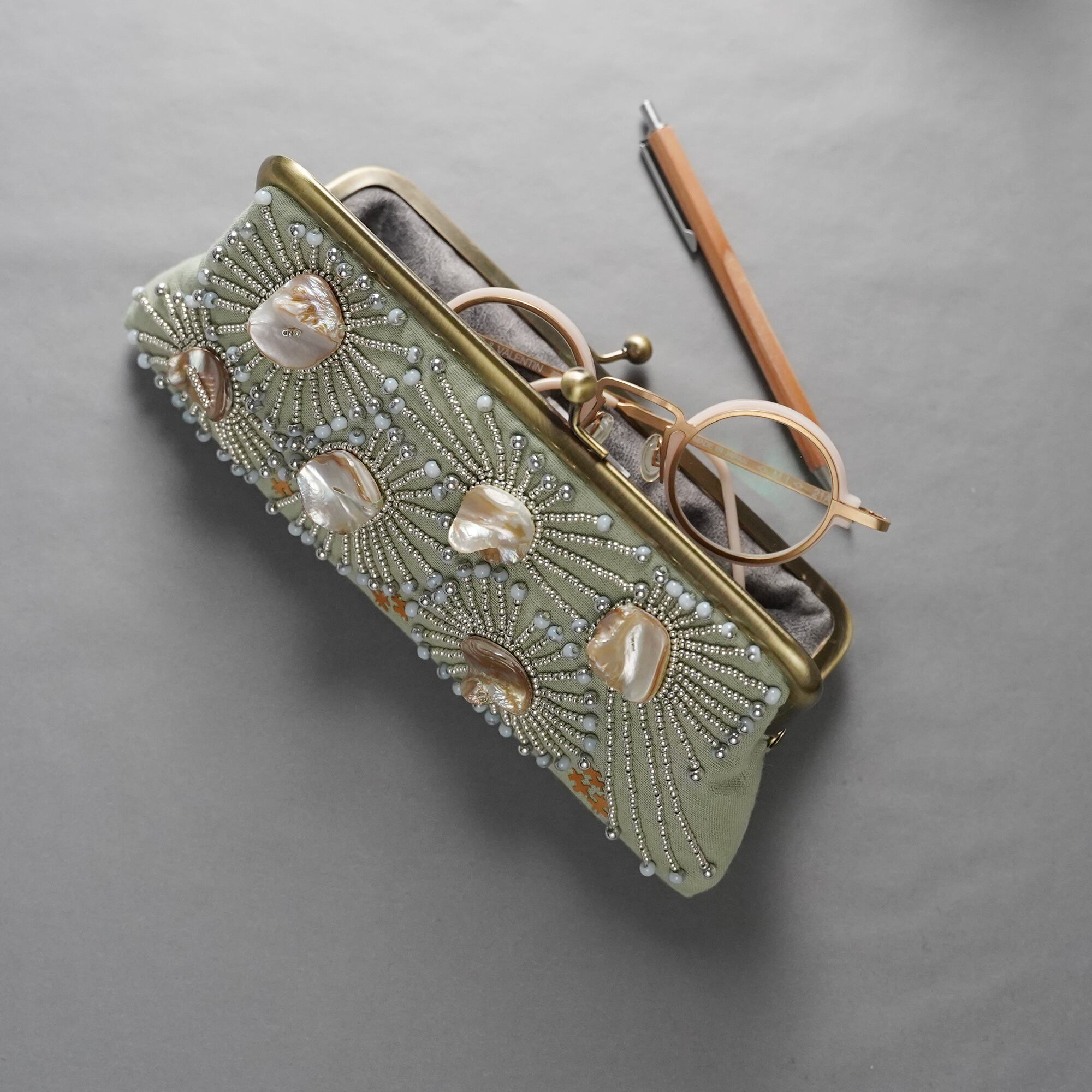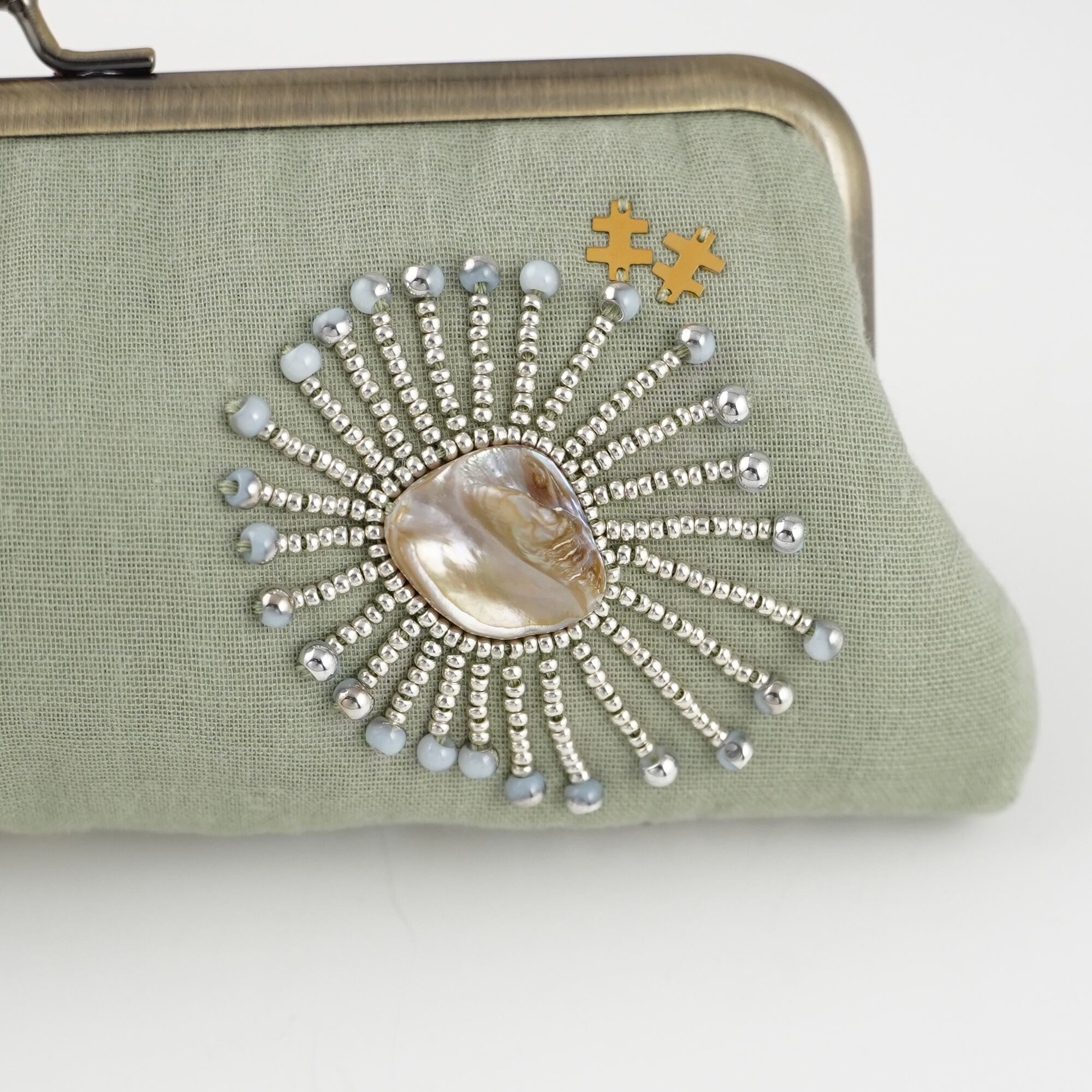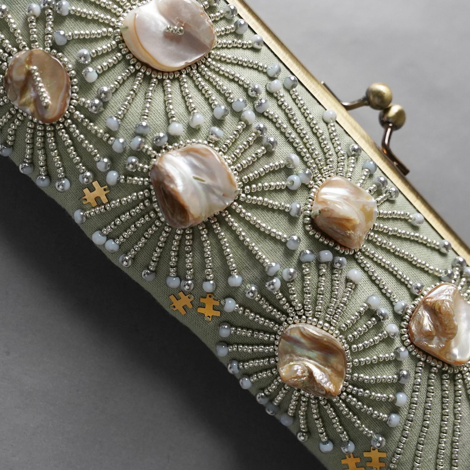 芯を貼った表地に糸やビーズで細かな刺繍を施しました。
