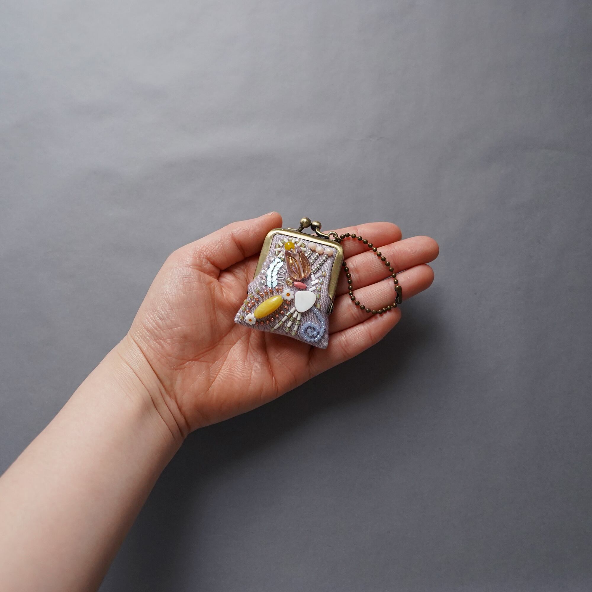 大切なアクセサリーや必ず持っておきたい常備薬など、細かなものがおさまる小さな小さながま口です。