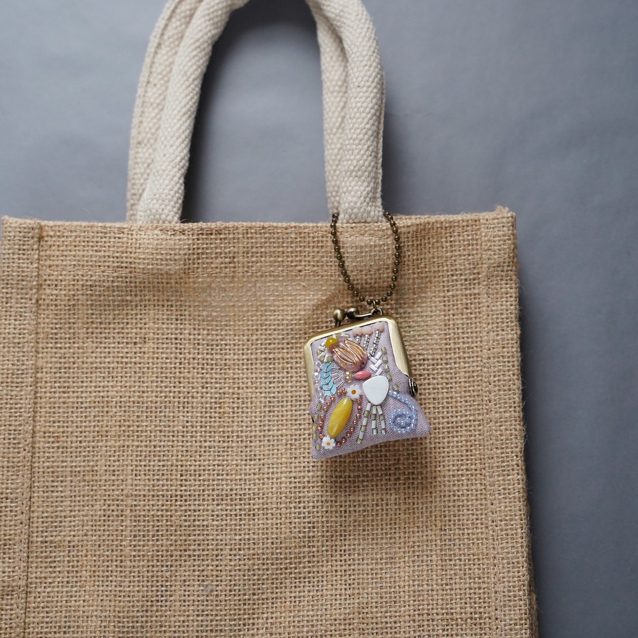 ※掲載のバッグチャーム用チェーンの見本画像は、バッグチャームがま口シリーズ共通のイメージです。刺繍の柄は商品ごとに異なります(トップ画像の刺繍デザインが実際のアイテムです)