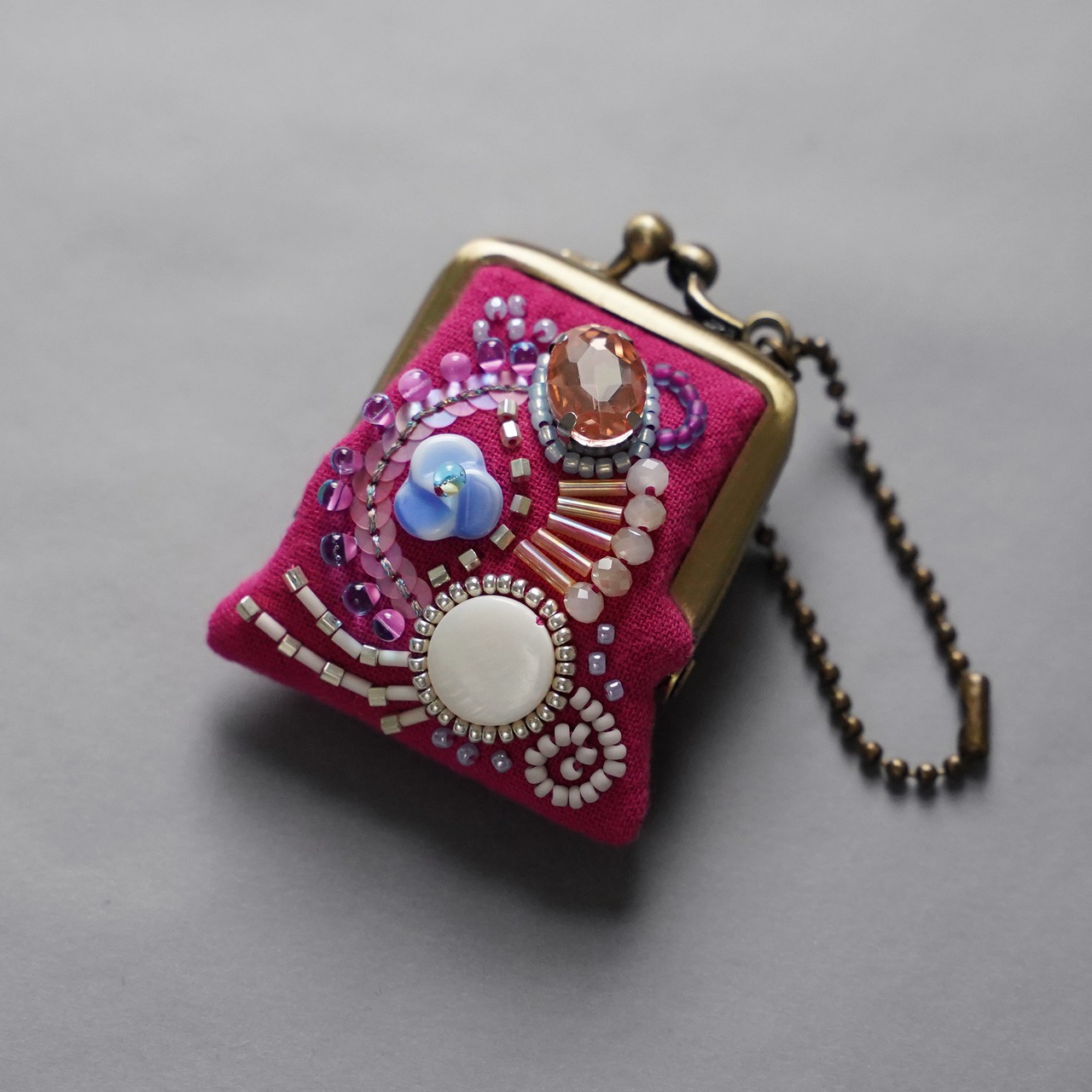 こんなに小さくて細かな刺繍のがま口があるんだ!── アクセサリーや常備薬など、細かなものがおさまる、華やかなビーズ刺繍の小さな小さながま口です。