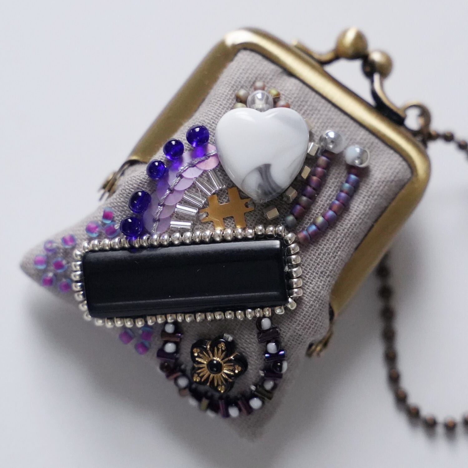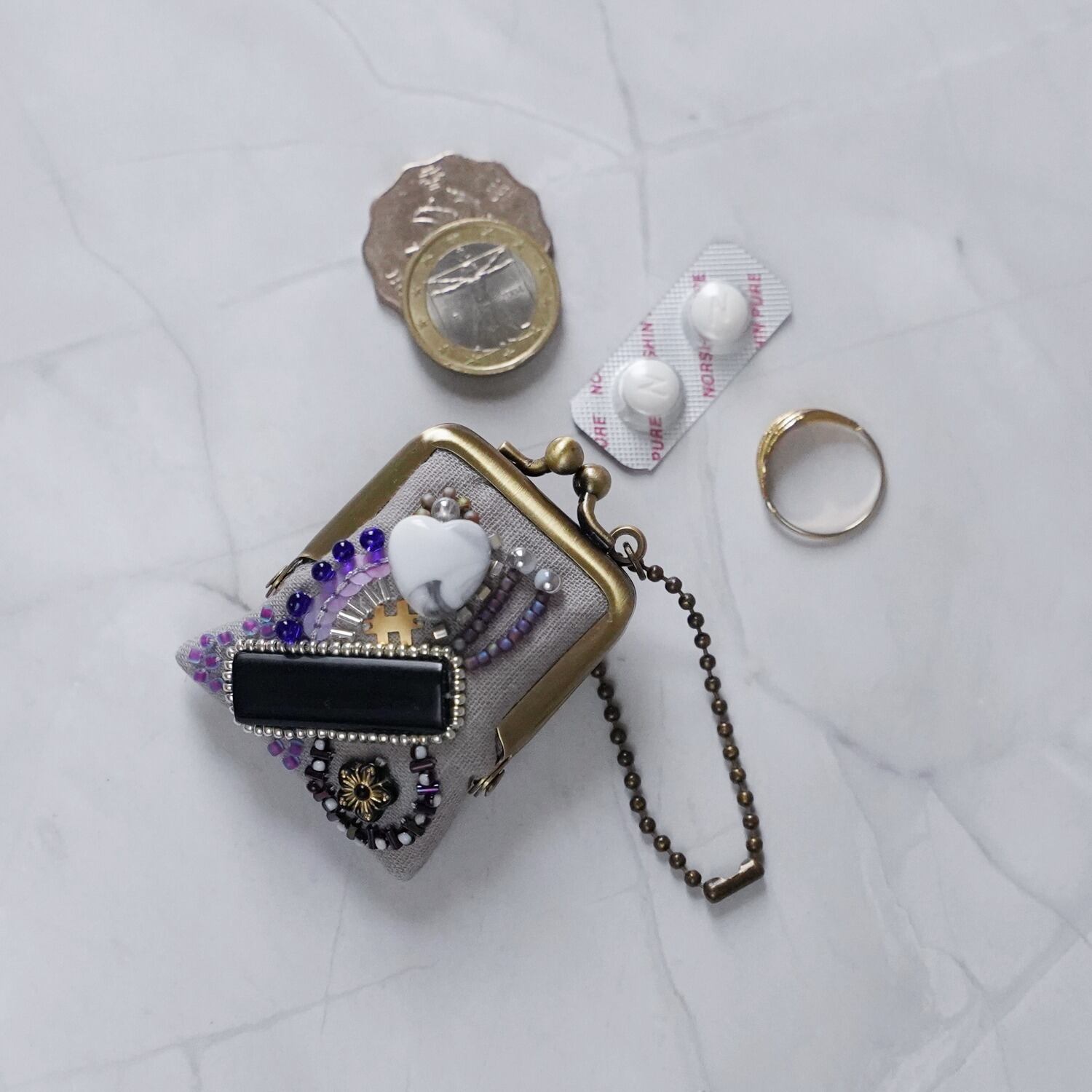 こんなに小さくて細かな刺繍のがま口があるんだ!── アクセサリーや常備薬など、細かなものがおさまる、華やかなビーズ刺繍の小さな小さながま口です。