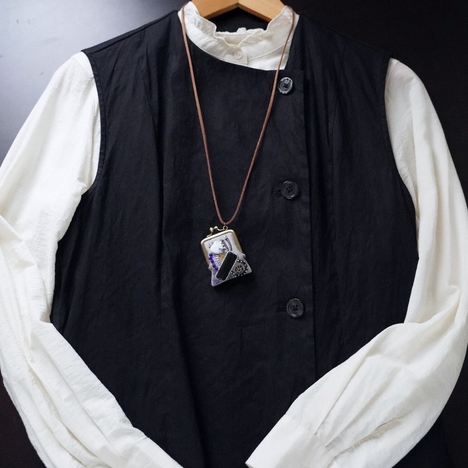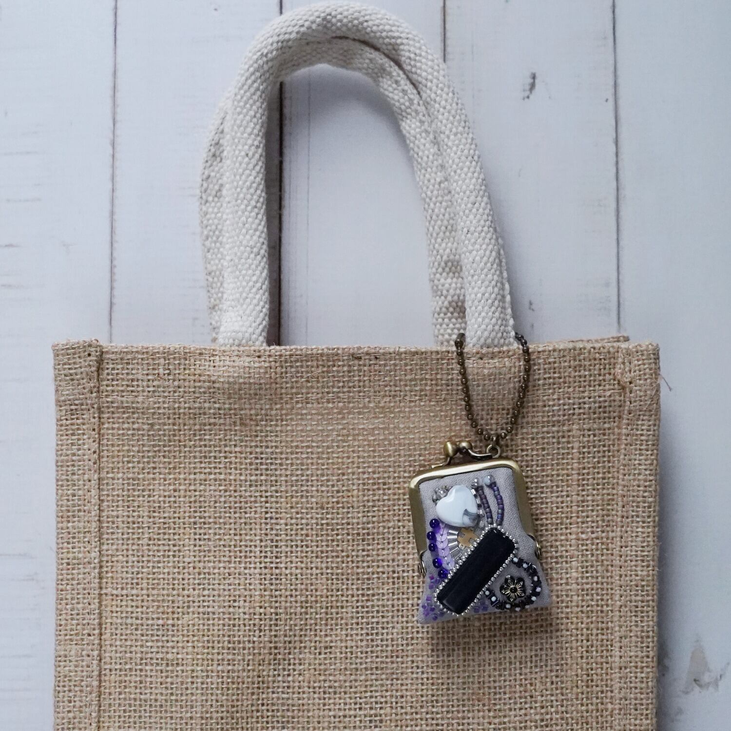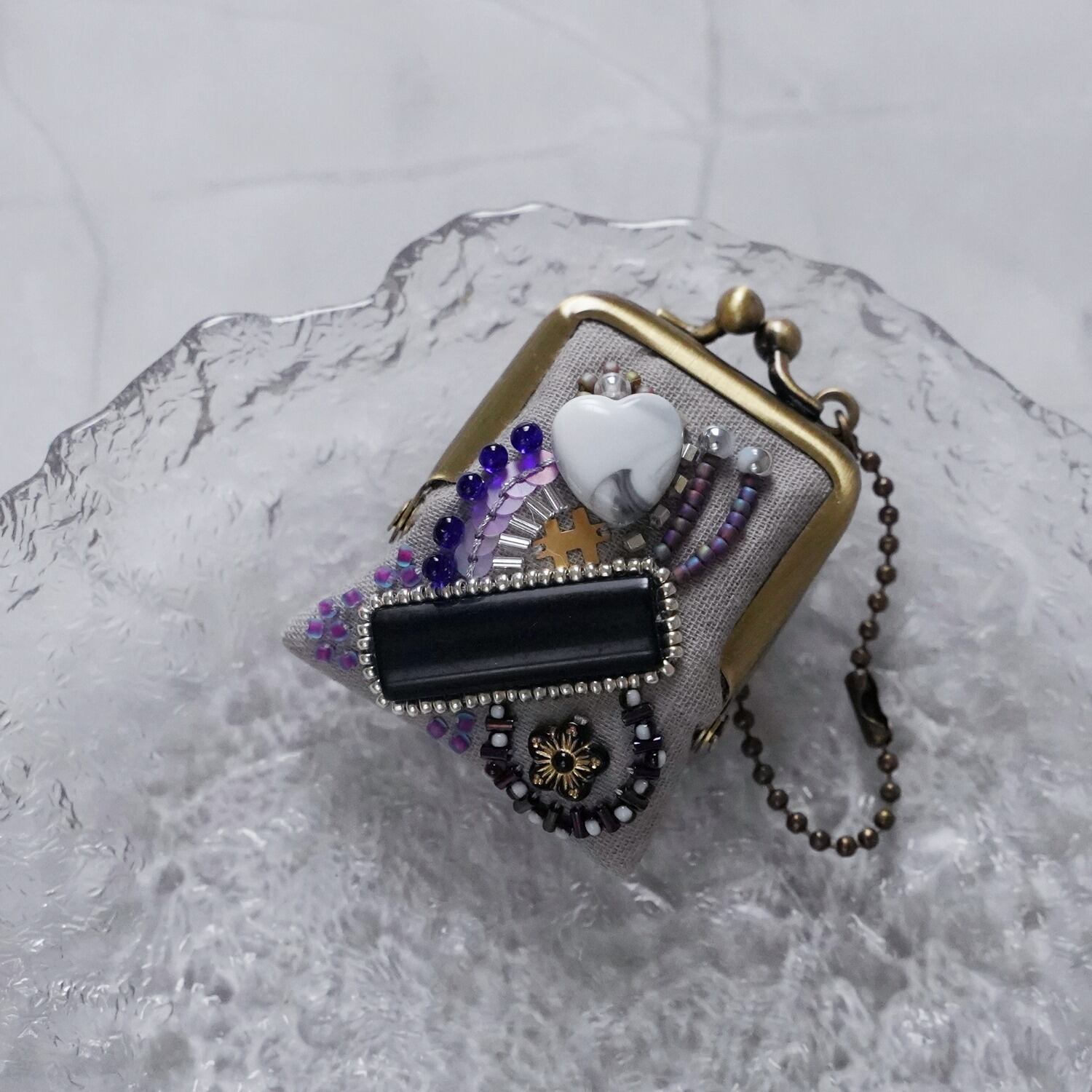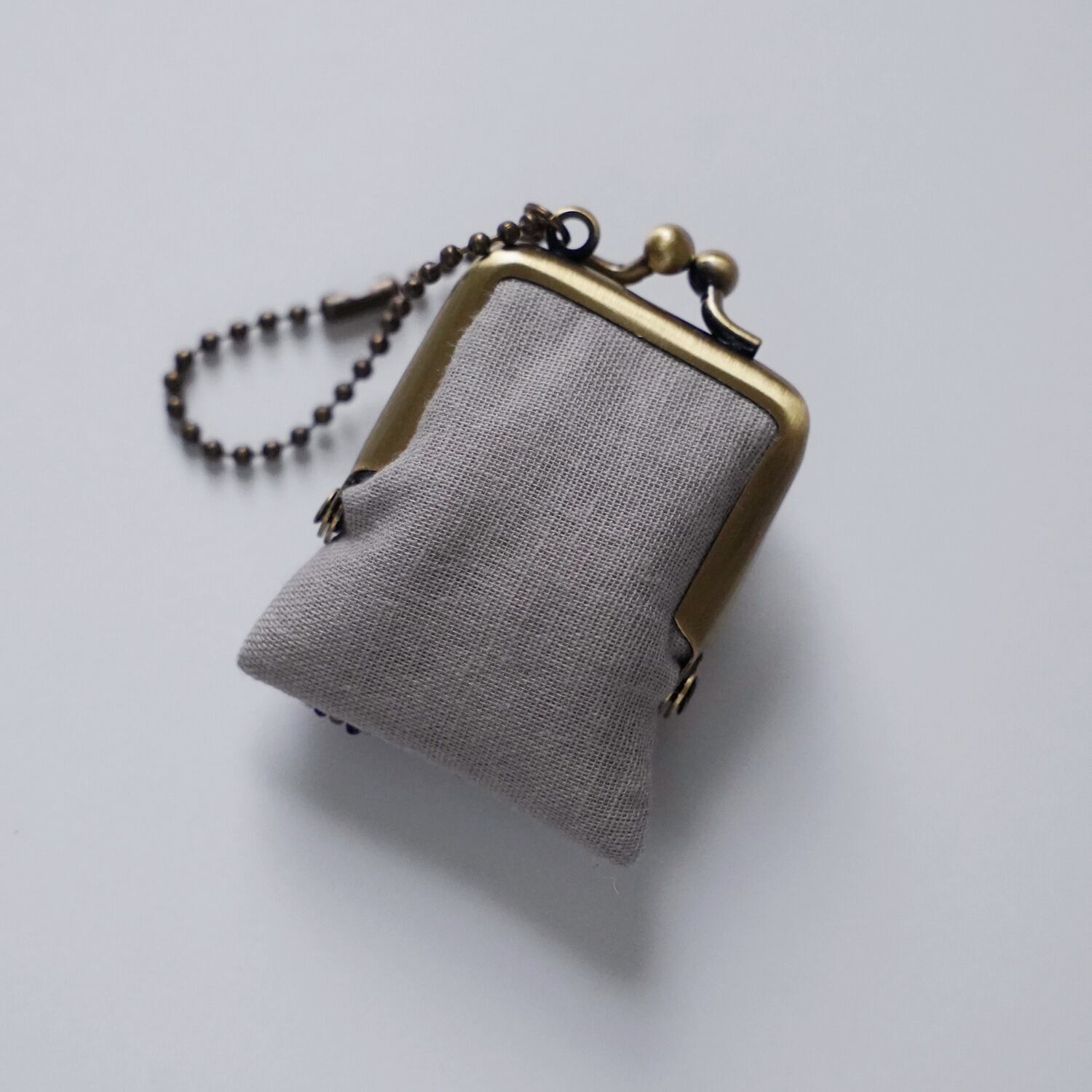 ネックレスにも、バッグチャームにも、小さな小さなビーズ刺繍のがま口 69 グレー ガーゼ アクセサリーケース