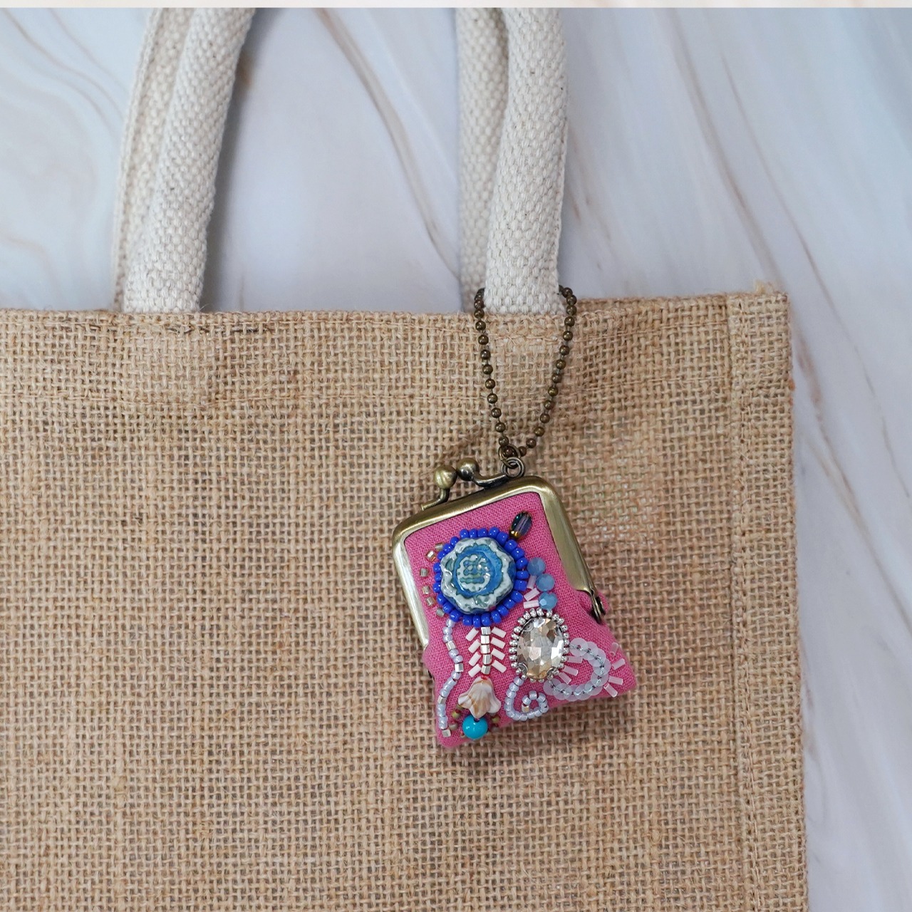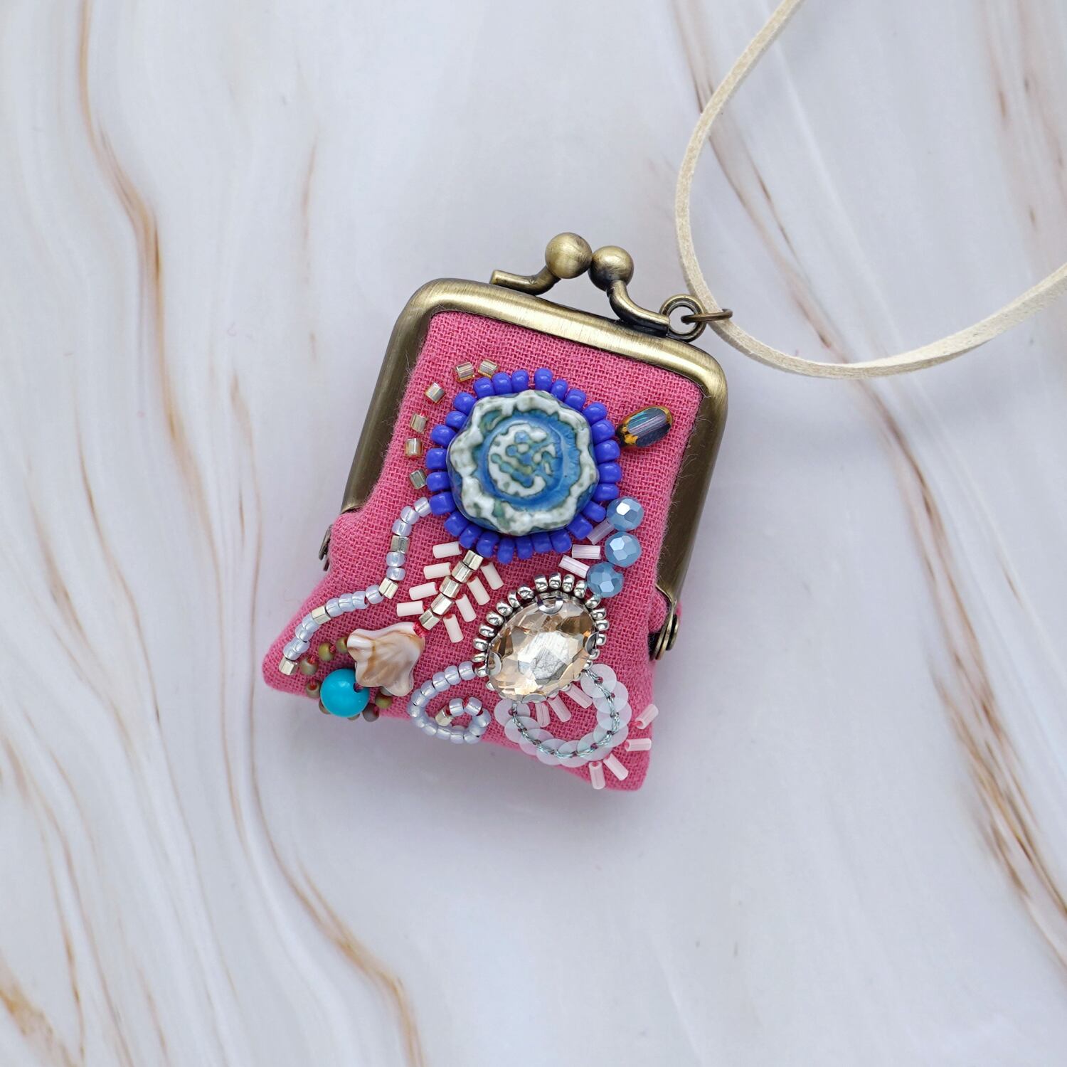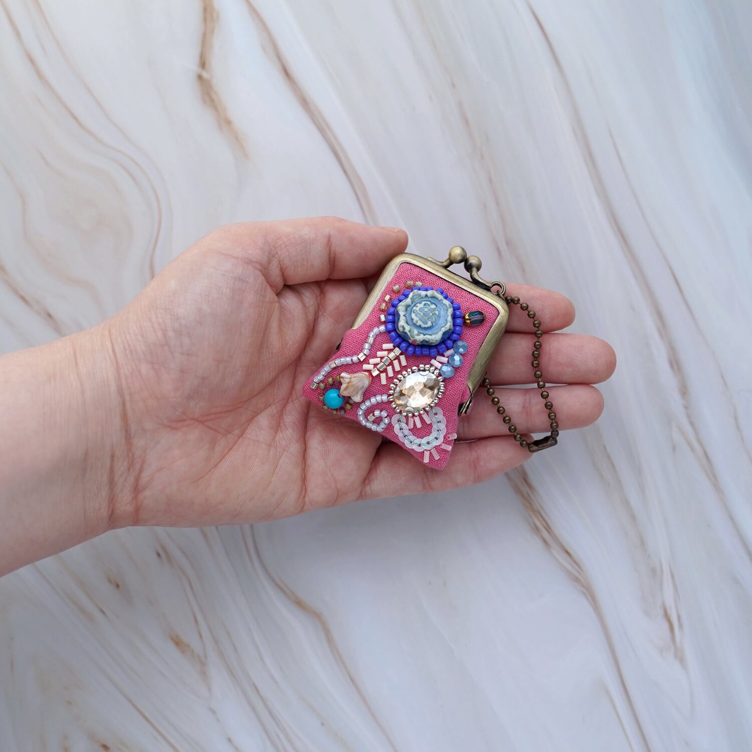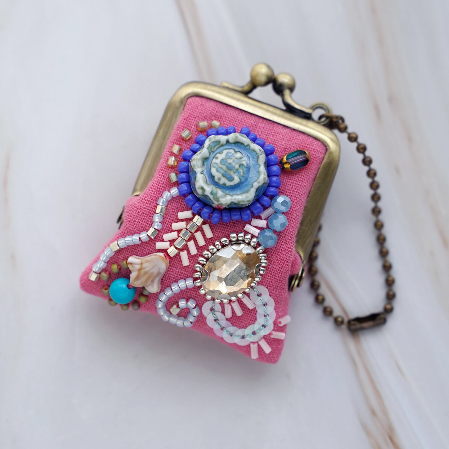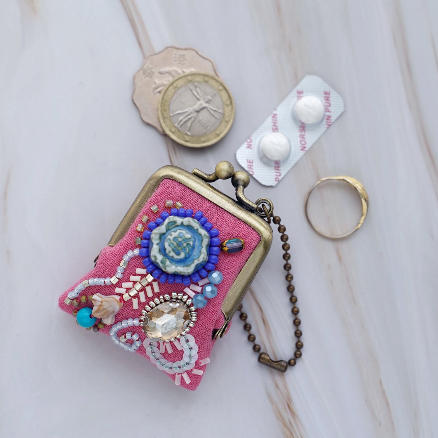 こんなに小さくて細かな刺繍のがま口があるんだ!── アクセサリーや常備薬など、細かなものがおさまる、華やかなビーズ刺繍の小さな小さながま口です。