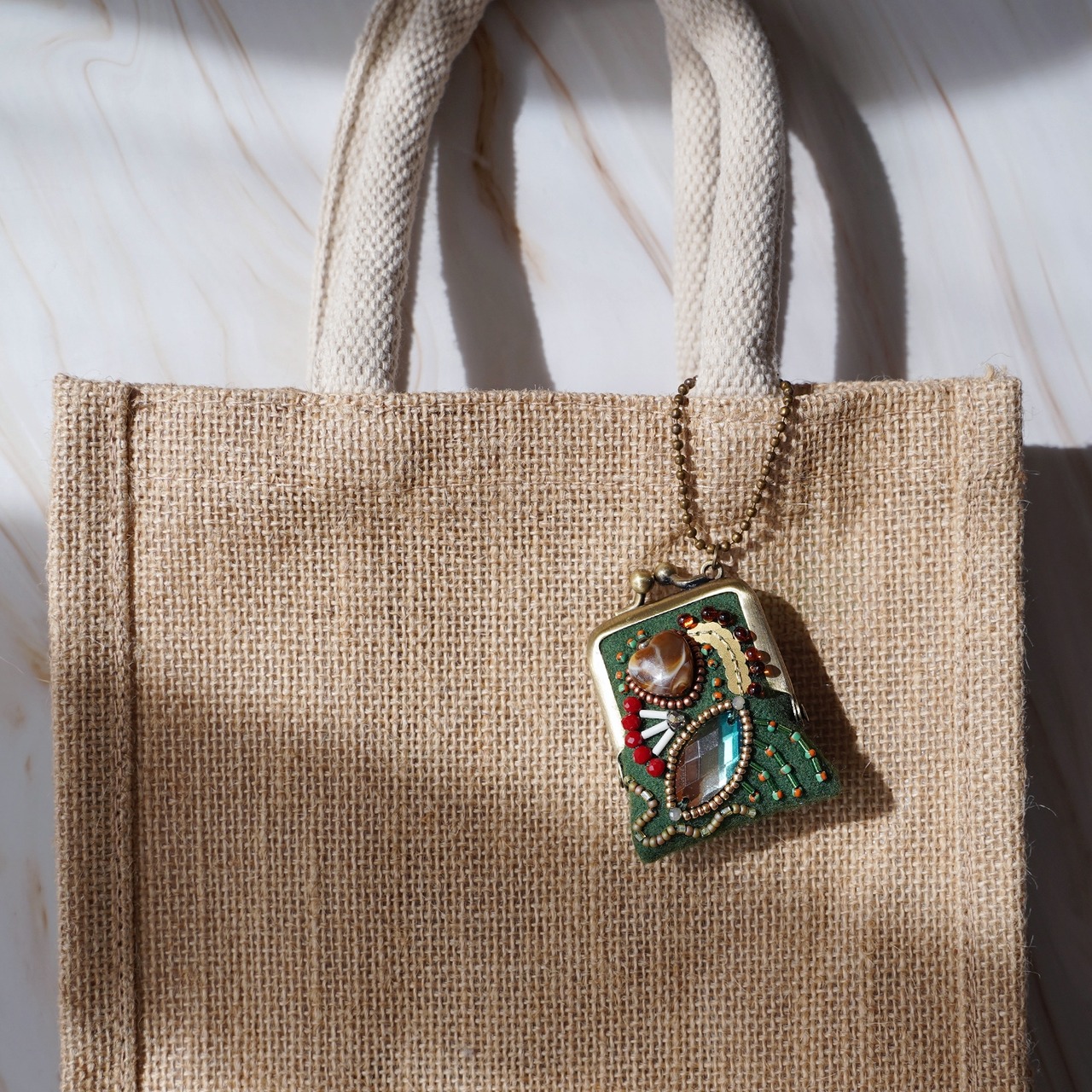 紐を通してネックレスとしても、バッグにつけてバッグチャームとしても。実用性だけでなく、華やかで気分も上がるアイテムです。