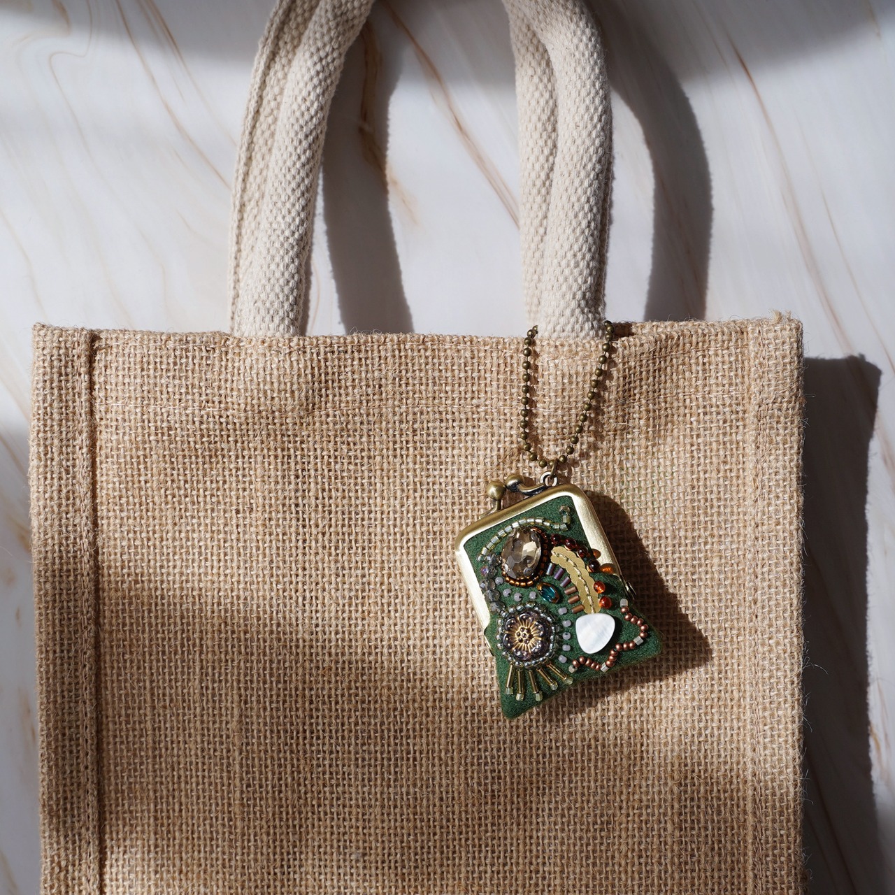 紐を通してネックレスとしても、バッグにつけてバッグチャームとしても。実用性だけでなく、華やかで気分も上がるアイテムです。