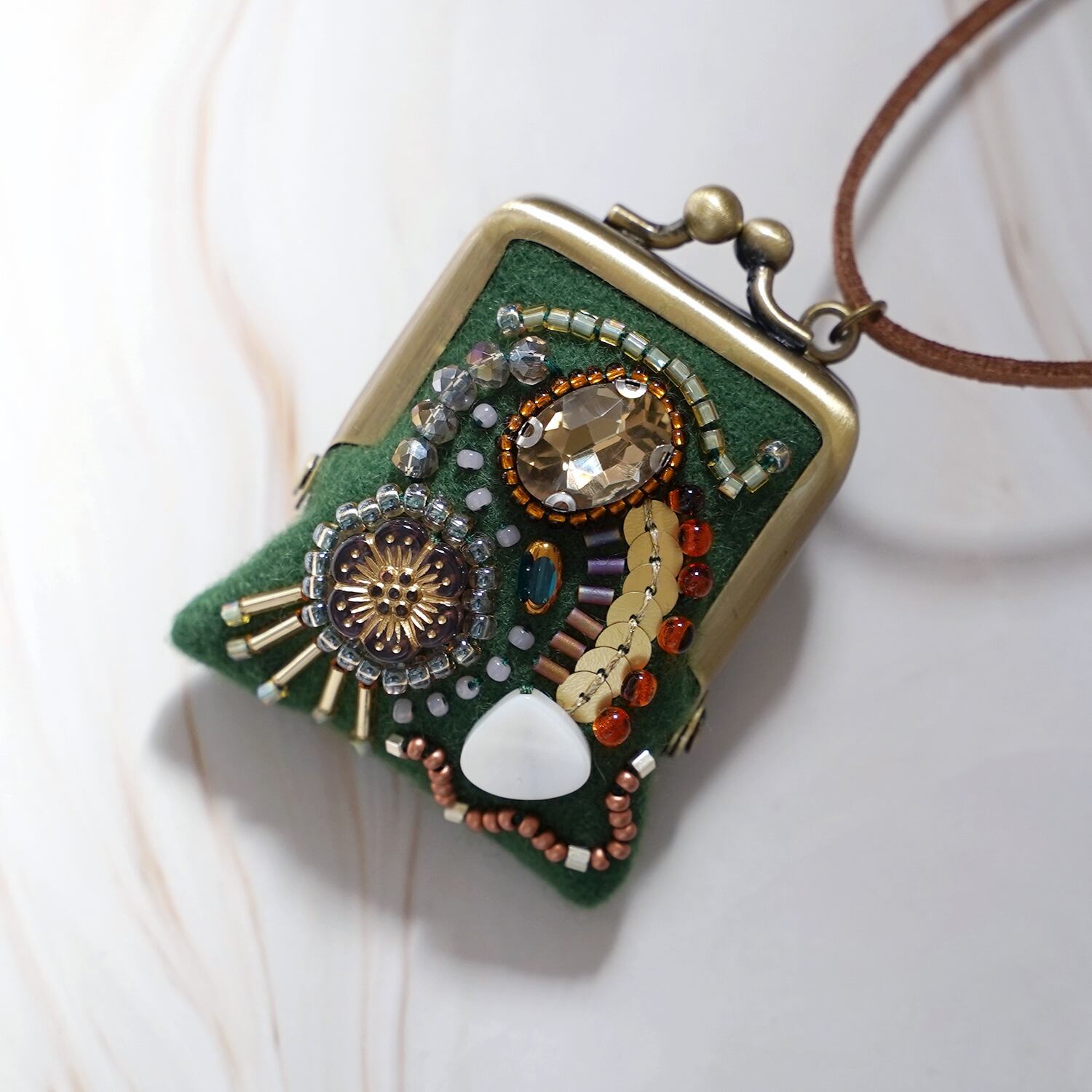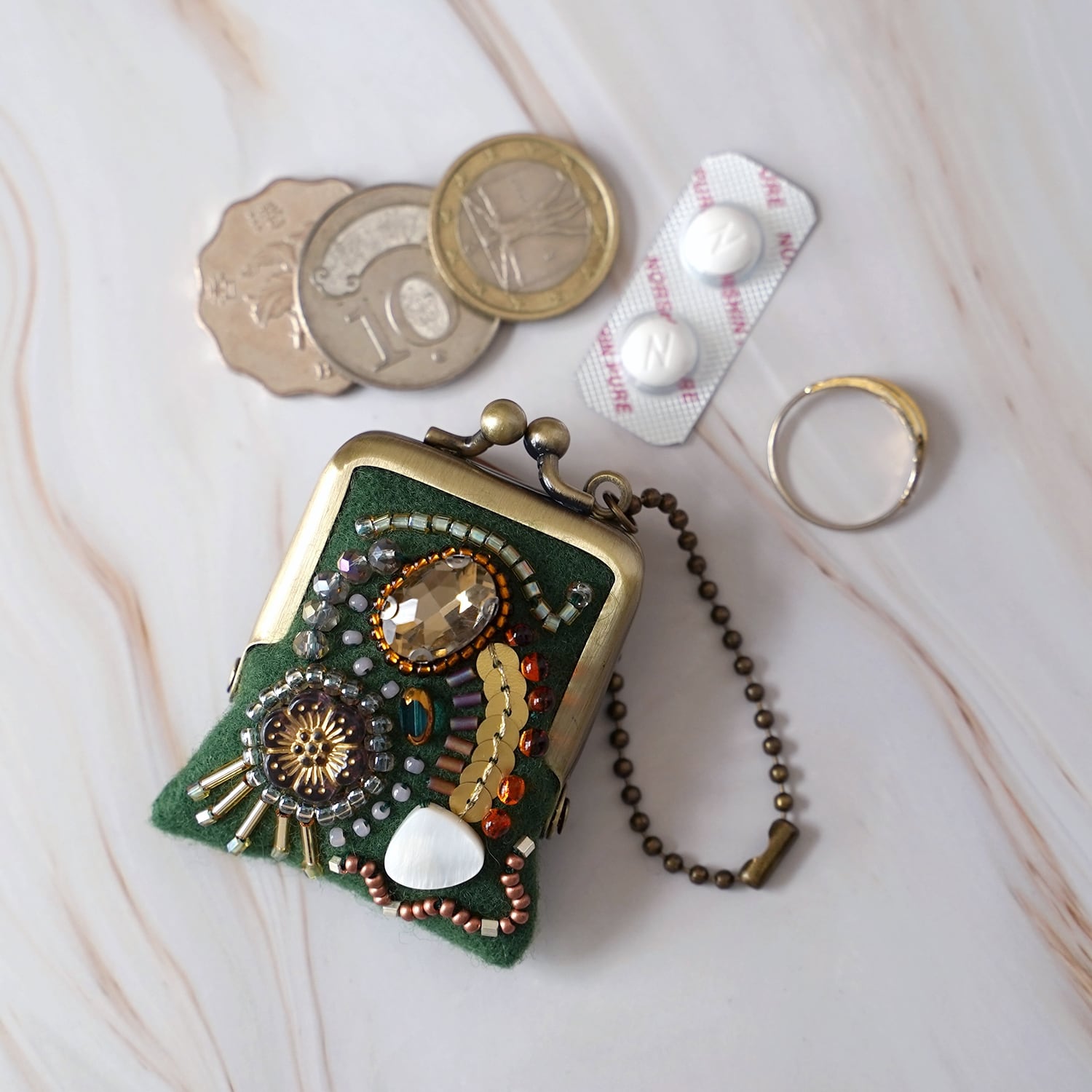 こんなに小さくて細かな刺繍のがま口があるんだ!── アクセサリーや常備薬など、細かなものがおさまる、華やかなビーズ刺繍の小さな小さながま口です。