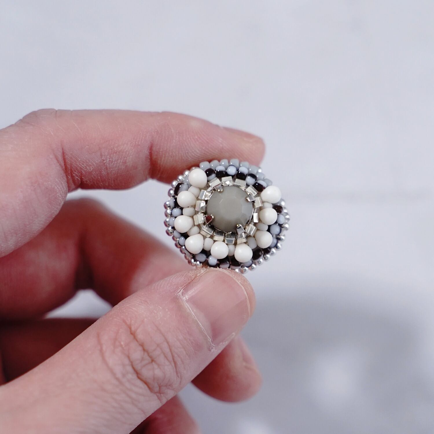小さな作品を作るとき、まずメインのビーズを決めます。