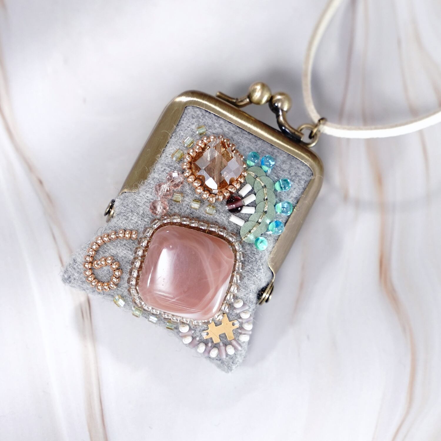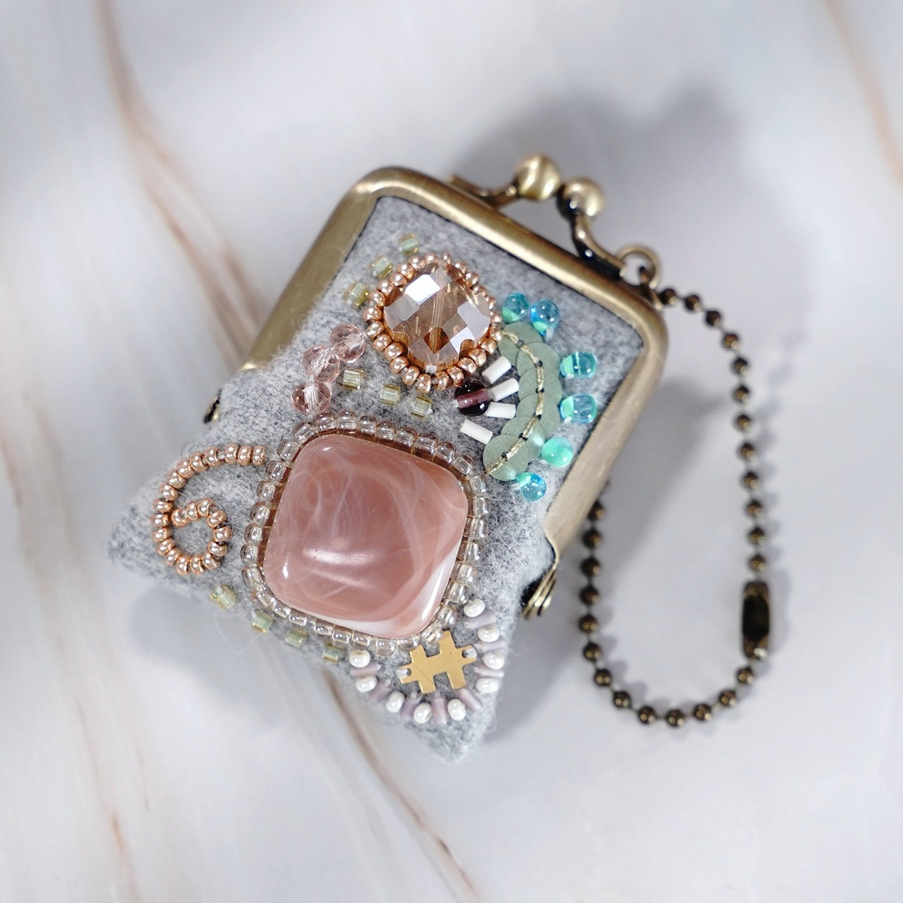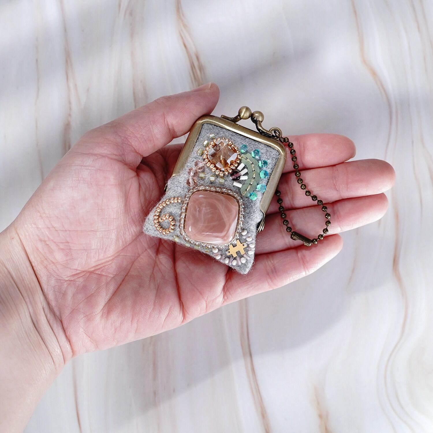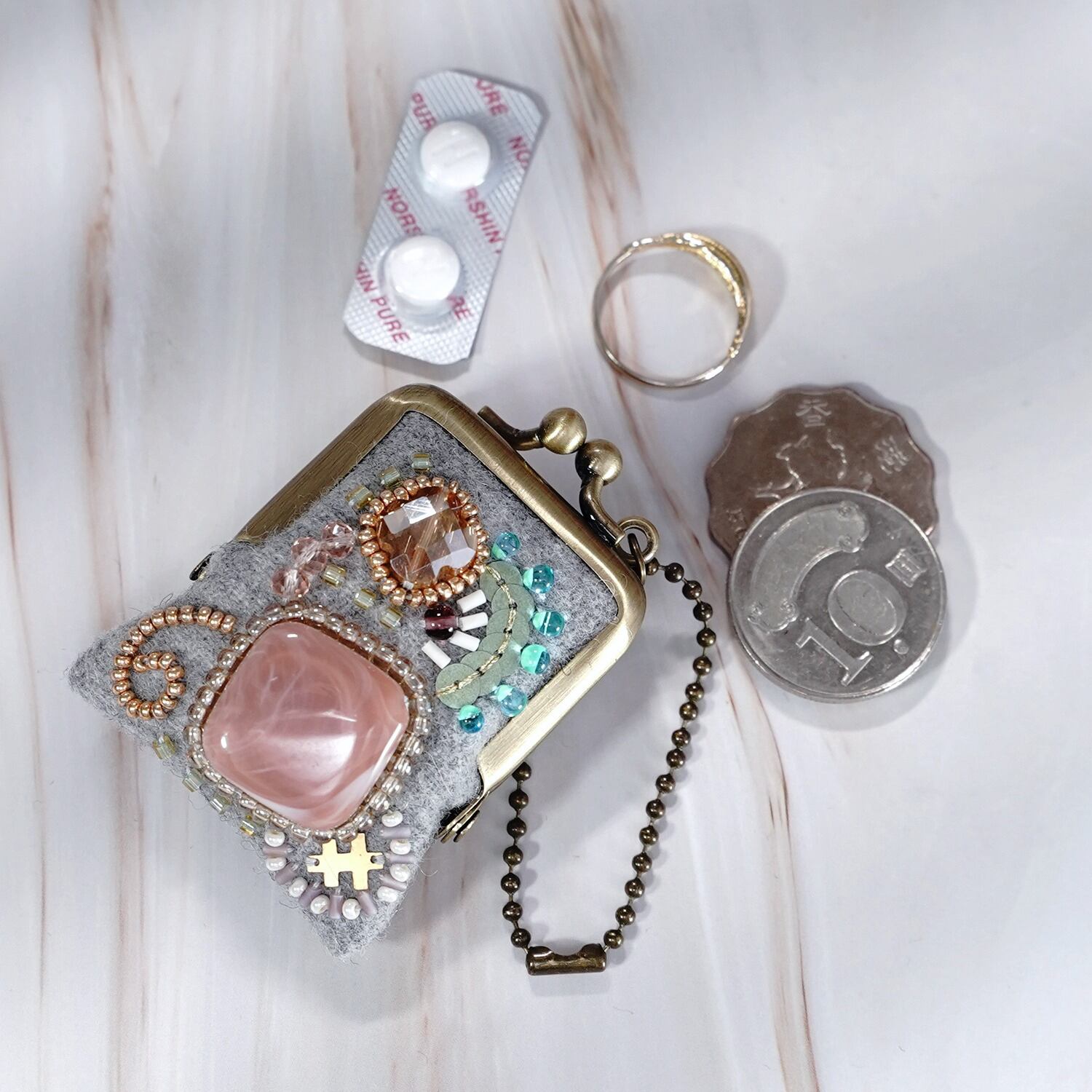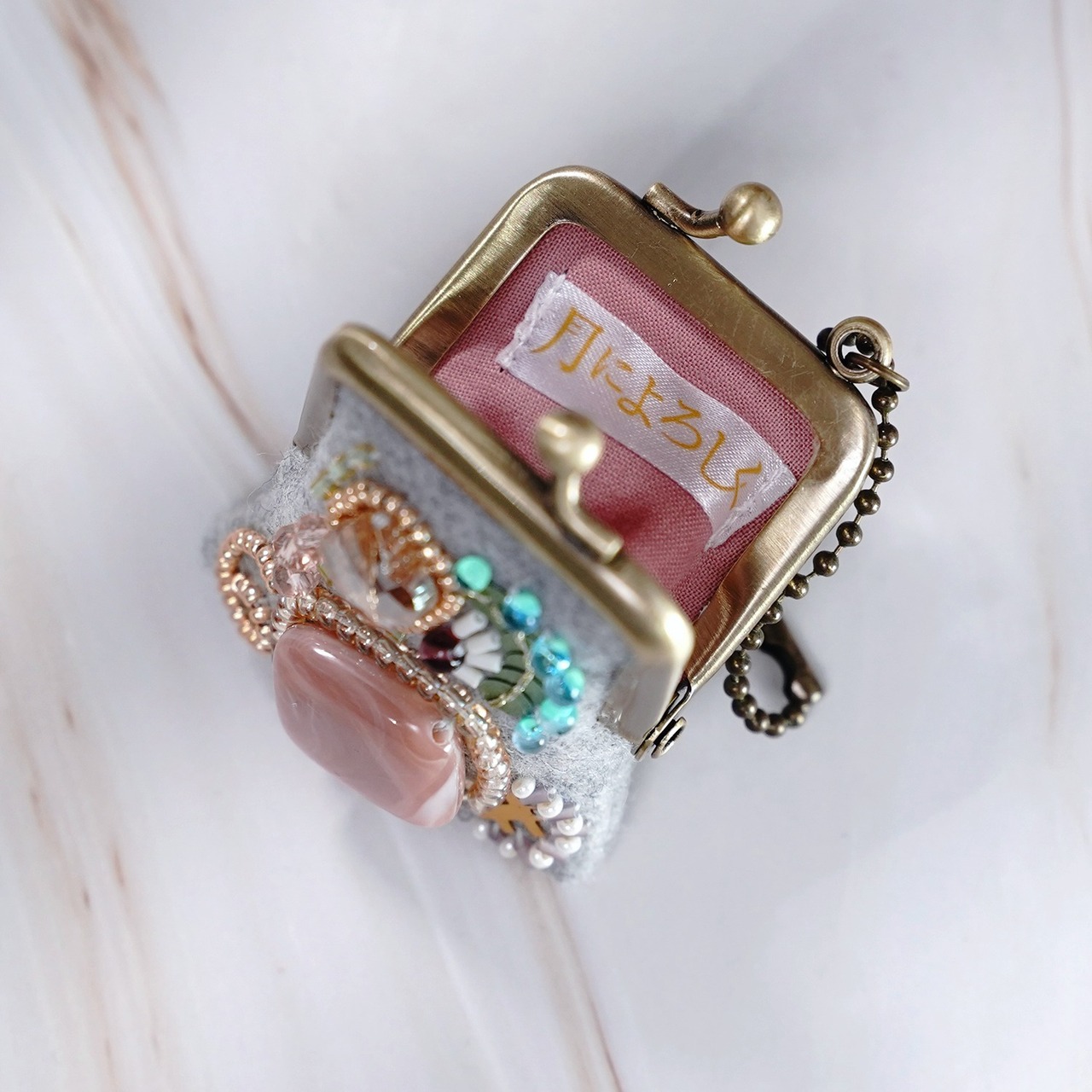 こんなに小さくて細かな刺繍のがま口があるんだ!── アクセサリーや常備薬など、細かなものがおさまる、華やかなビーズ刺繍の小さな小さながま口です。
