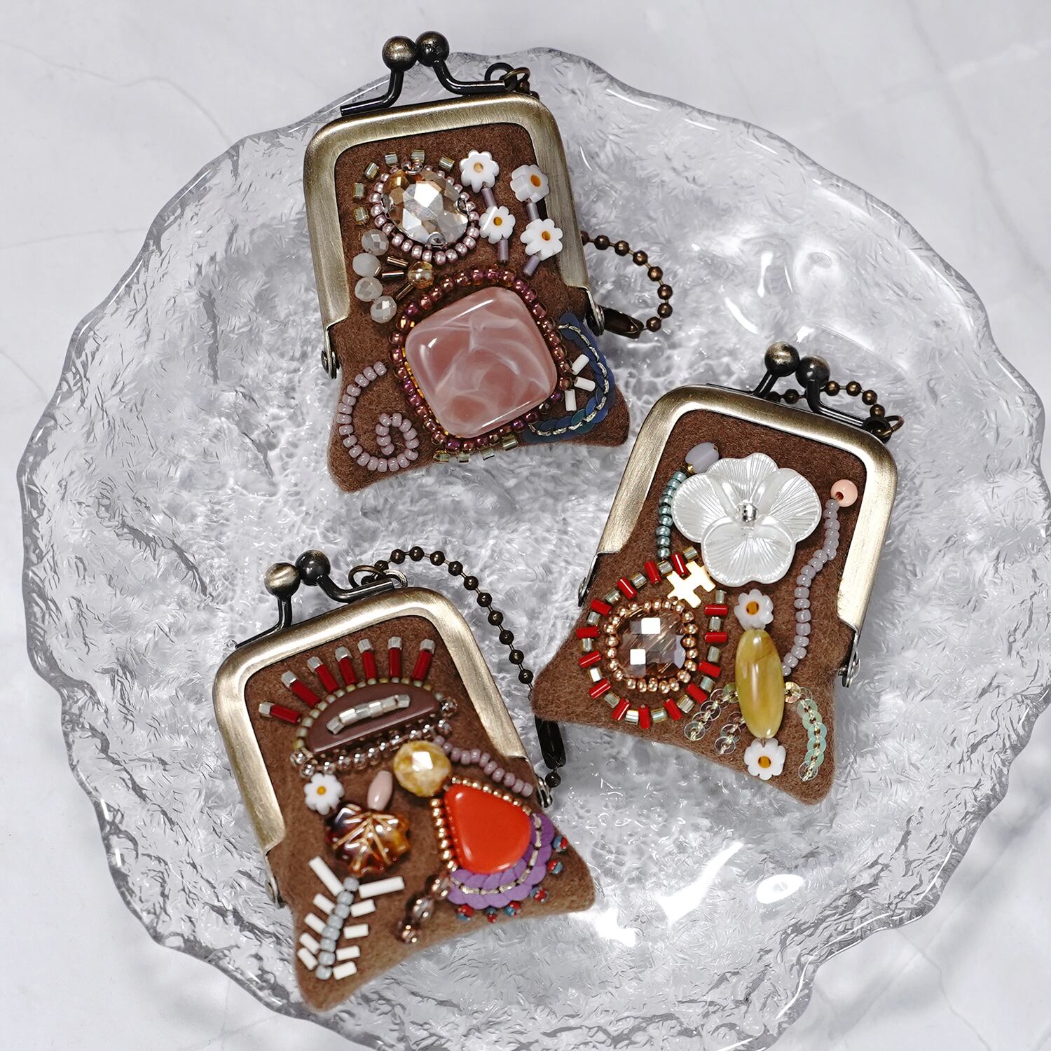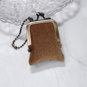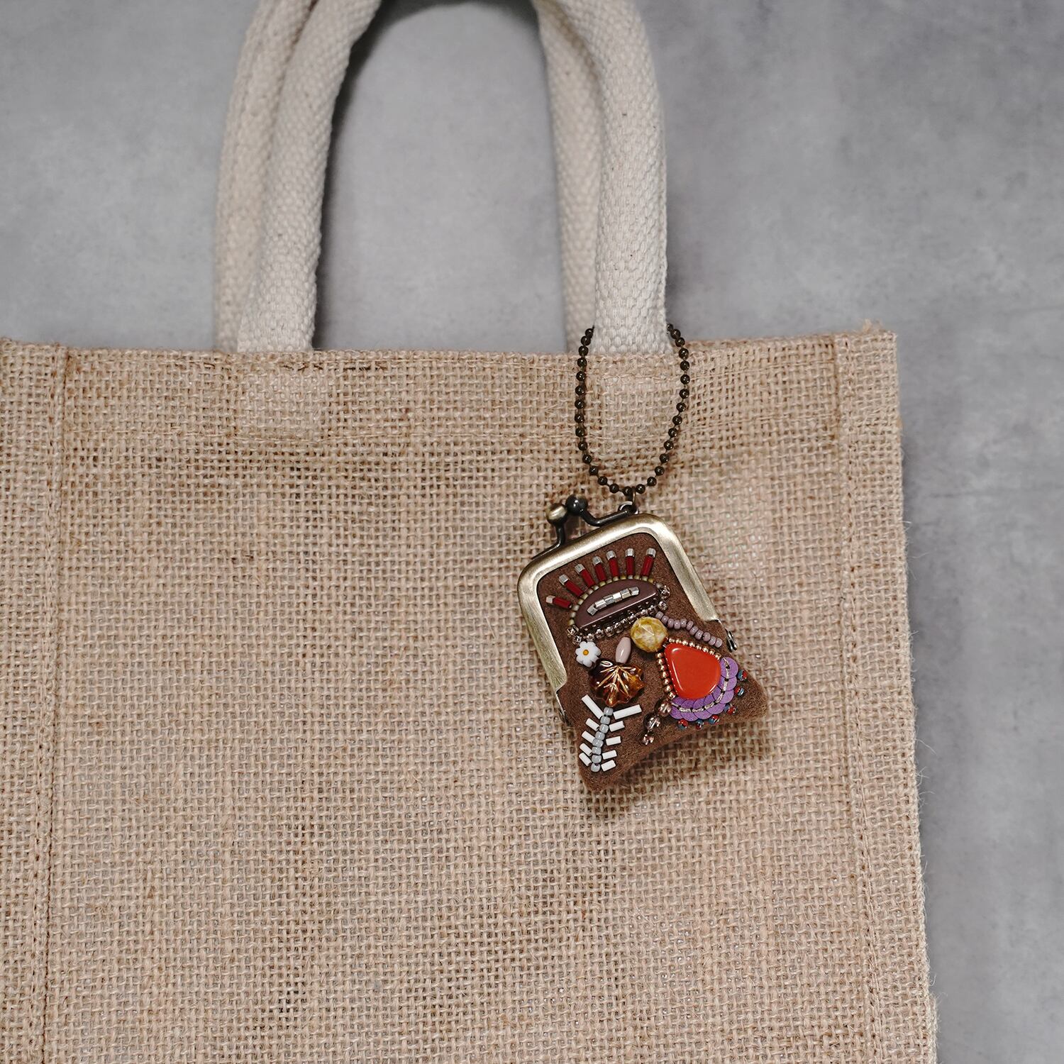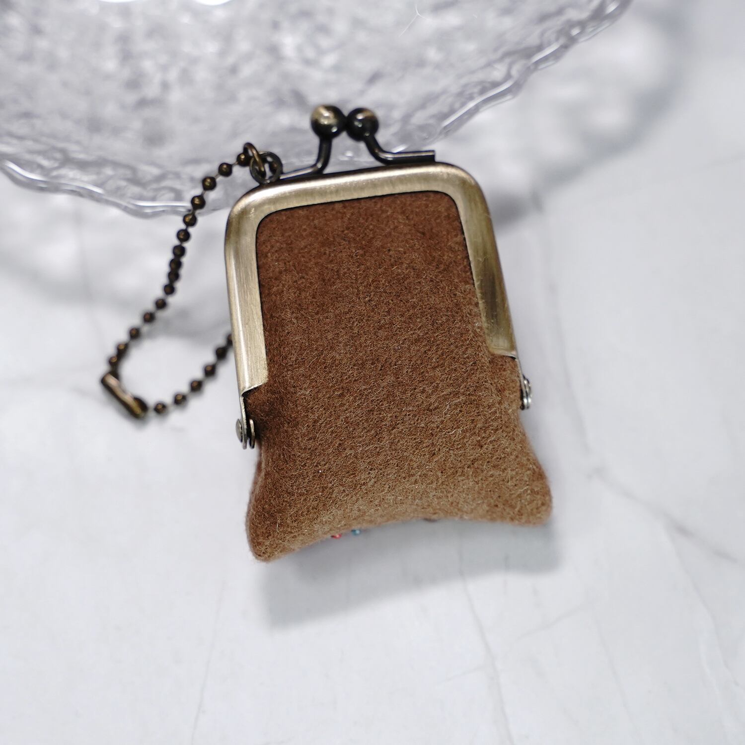 小さなビーズ刺繍のがま口 No.84|キャメル×ウール|ネックレス・バッグチャームにも|アクセサリーケース|一点物