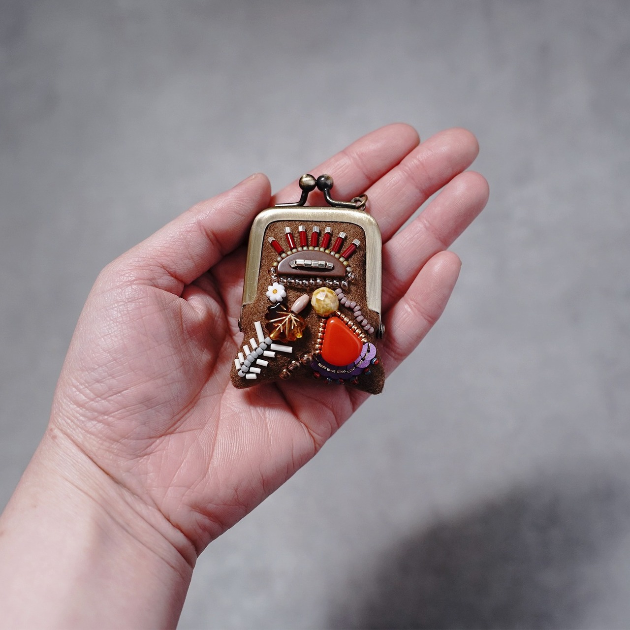 こんなに小さくて細かな刺繍のがま口があるんだ!── アクセサリーや常備薬など、細かなものがおさまる、華やかなビーズ刺繍の小さな小さながま口です。