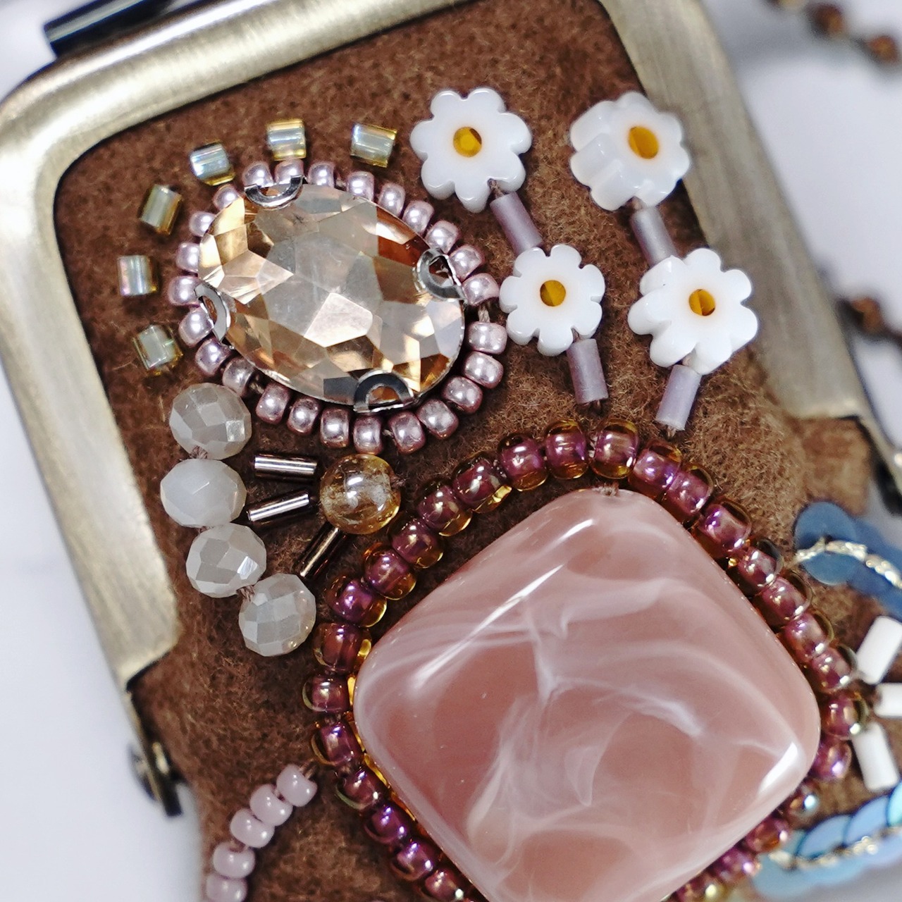 こんなに小さくて細かな刺繍のがま口があるんだ!── アクセサリーや常備薬など、細かなものがおさまる、華やかなビーズ刺繍の小さな小さながま口です。
