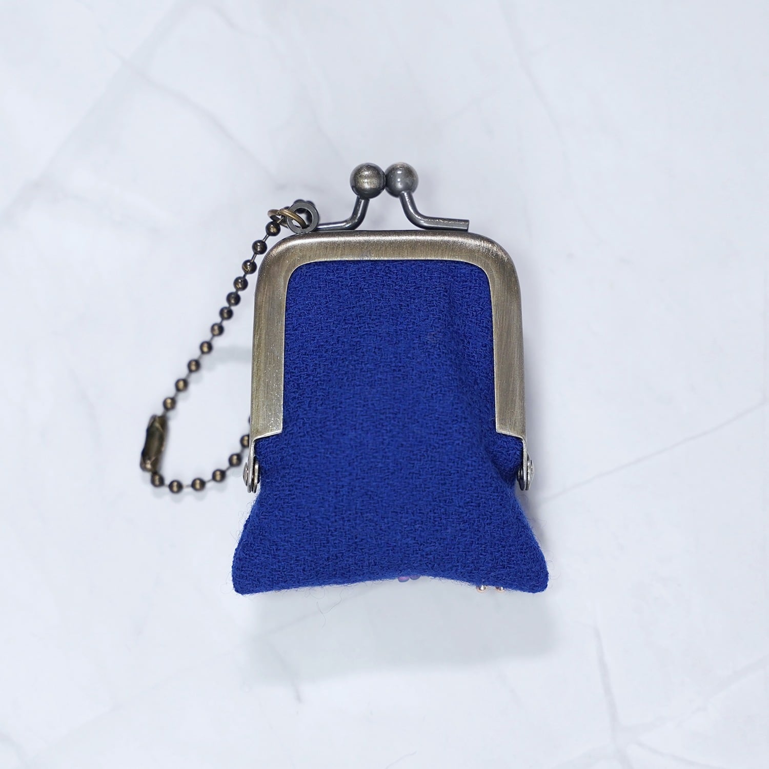 小さなビーズ刺繍のがま口 No.88|ブルー×ウール|ネックレス・バッグチャームにも|アクセサリーケース|一点物