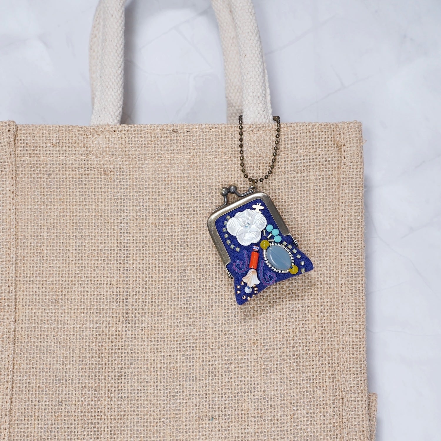 こんなに小さくて細かな刺繍のがま口があるんだ!── アクセサリーや常備薬など、細かなものがおさまる、華やかなビーズ刺繍の小さな小さながま口です。