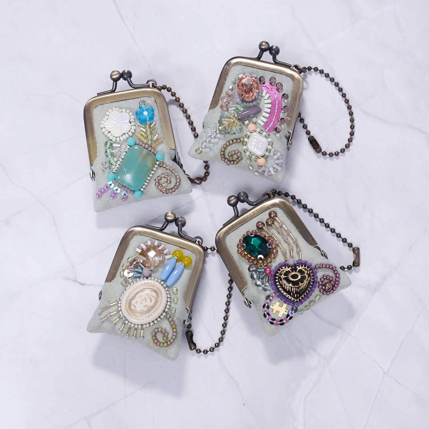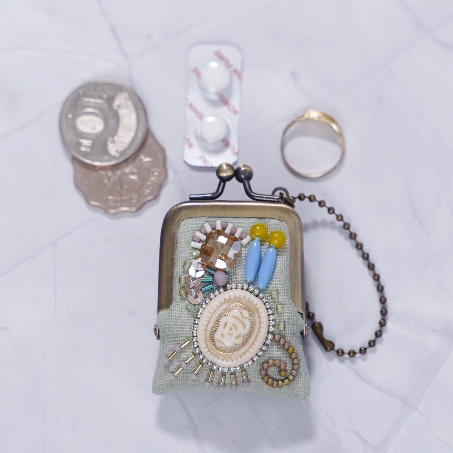 こんなに小さくて細かな刺繍のがま口があるんだ!── アクセサリーや常備薬など、細かなものがおさまる、華やかなビーズ刺繍の小さな小さながま口です。