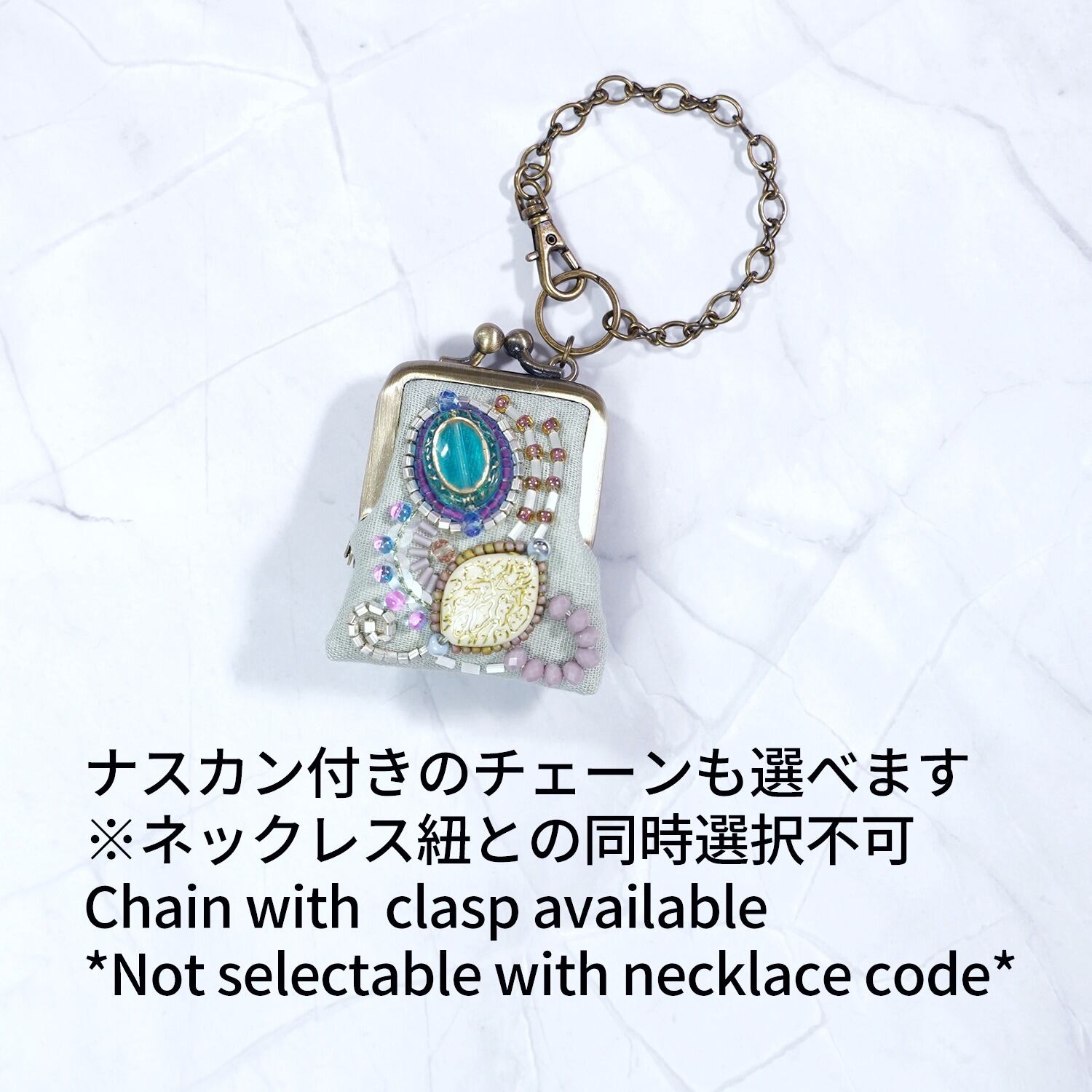 ※掲載のバッグチャーム用チェーンの見本画像は、バッグチャームがま口シリーズ共通のイメージです。刺繍の柄は商品ごとに異なります(トップ画像の刺繍デザインが実際のアイテムです)