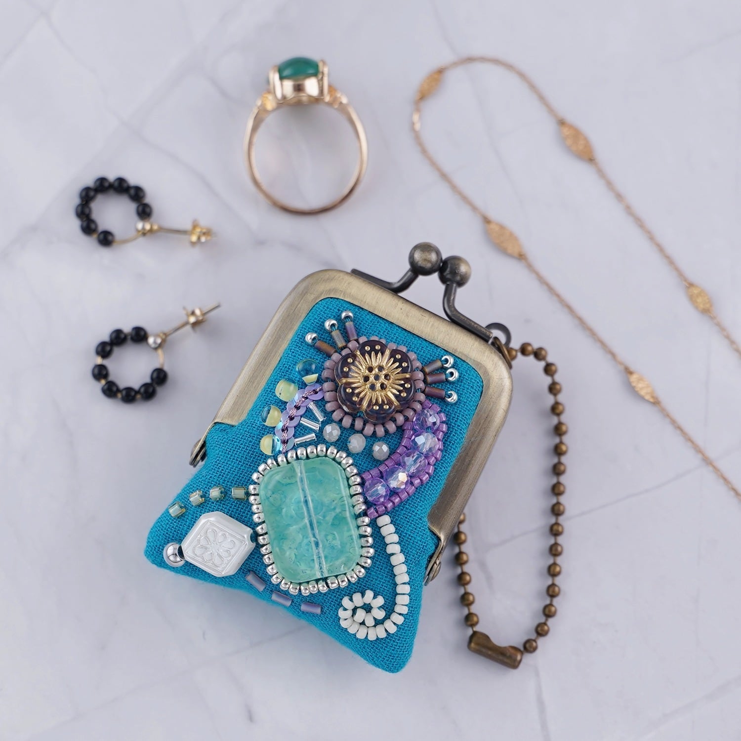こんなに小さくて細かな刺繍のがま口があるんだ!── アクセサリーや常備薬など、細かなものがおさまる、華やかなビーズ刺繍の小さな小さながま口です。