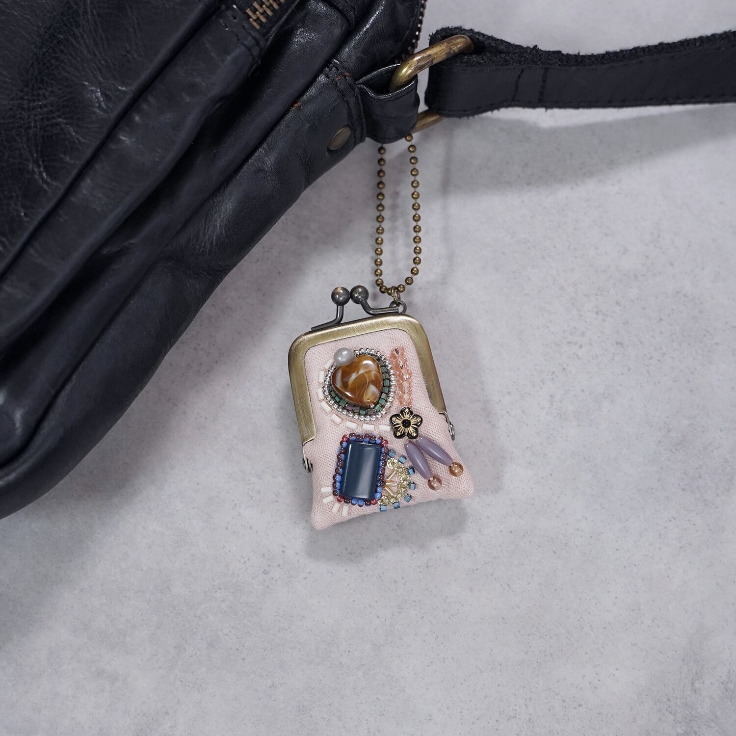 ※掲載のバッグチャーム用チェーンの見本画像は、バッグチャームがま口シリーズ共通のイメージです。刺繍の柄は商品ごとに異なります(トップ画像の刺繍デザインが実際のアイテムです)