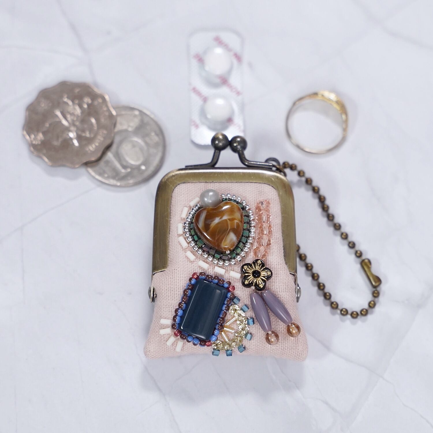 こんなに小さくて細かな刺繍のがま口があるんだ!── アクセサリーや常備薬など、細かなものがおさまる、華やかなビーズ刺繍の小さな小さながま口です。