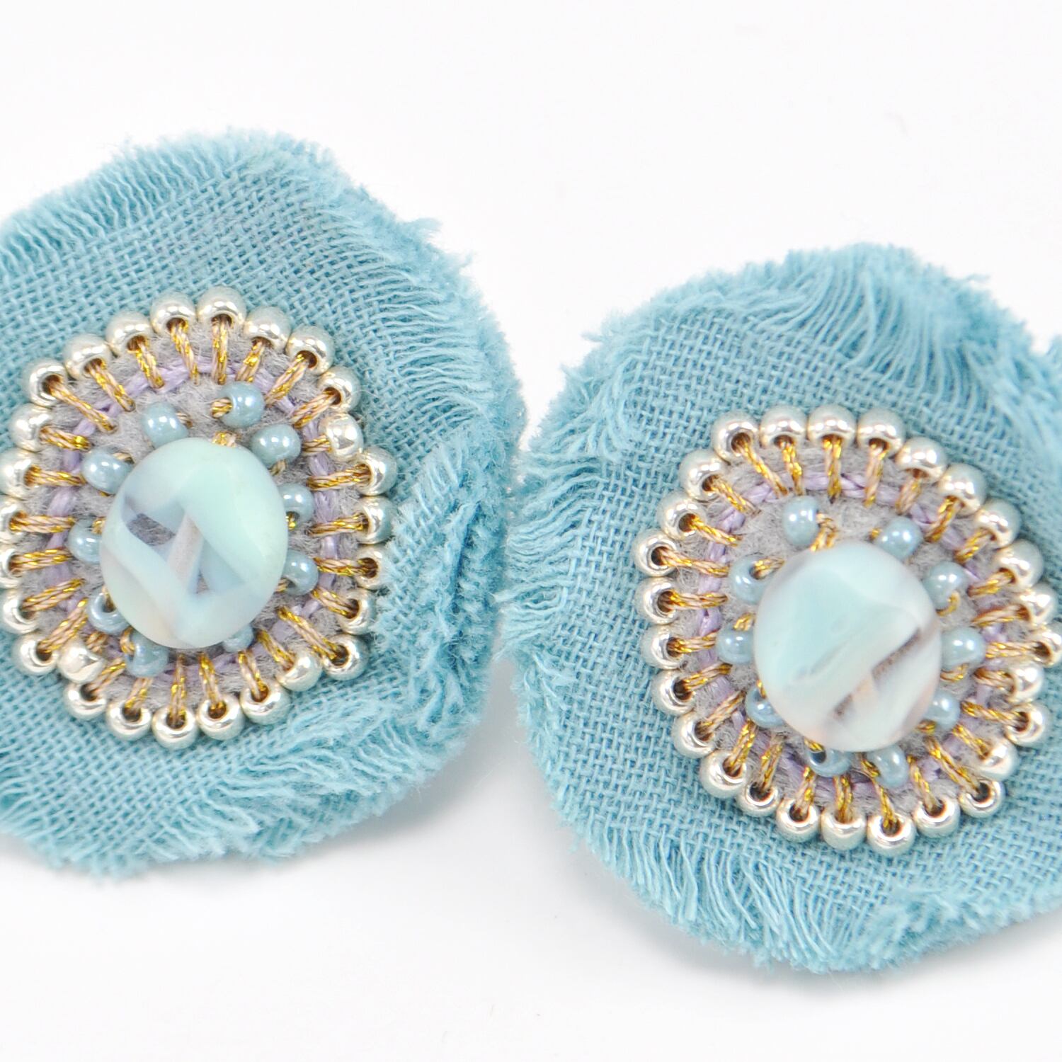 何重にも重ねたガーゼとビーズ刺繍を組み合わせたイヤリングです。