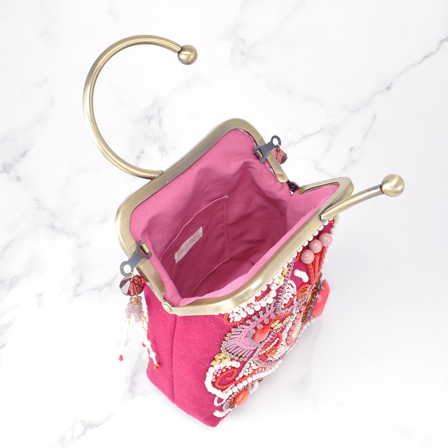 変わった形の口金を使用したバッグです。