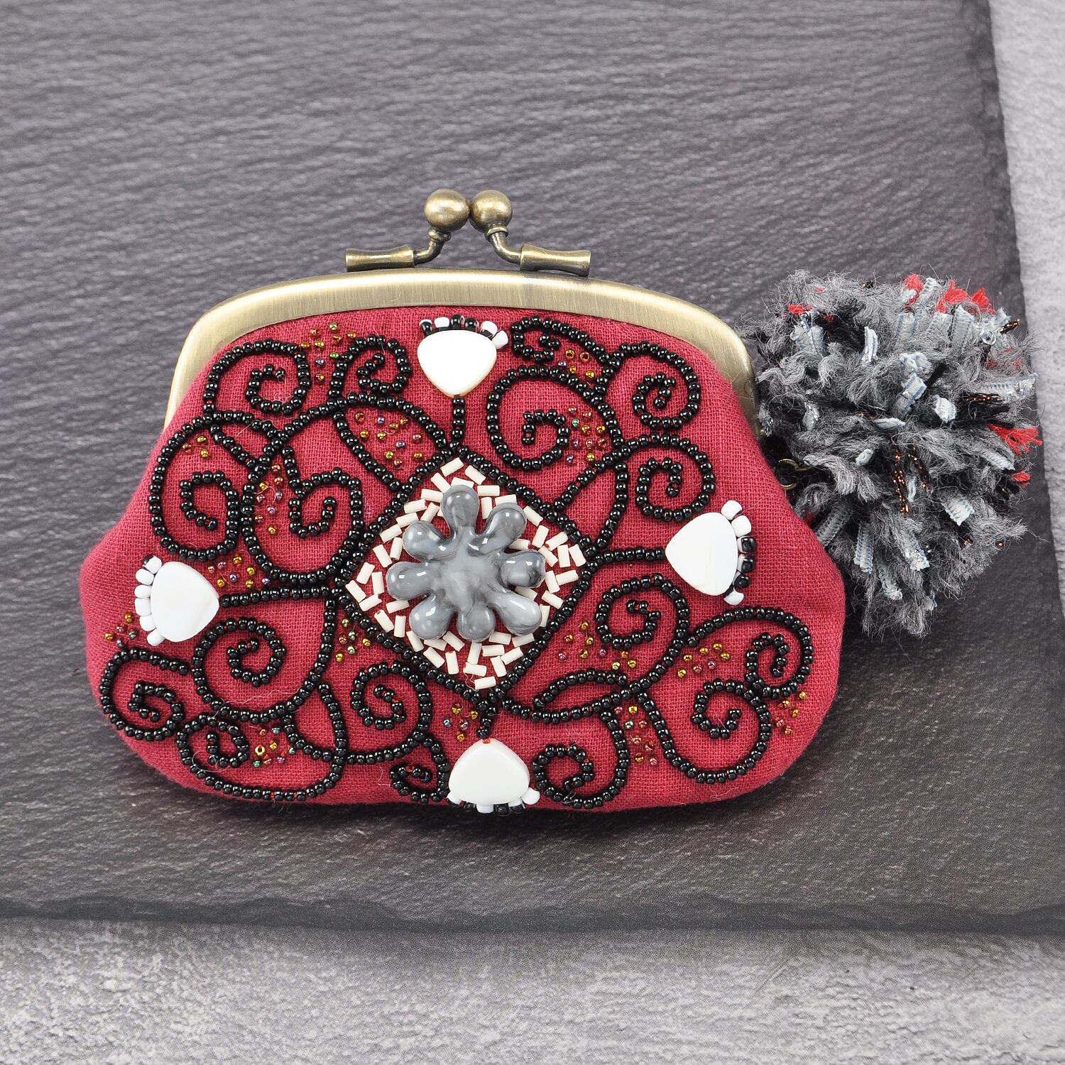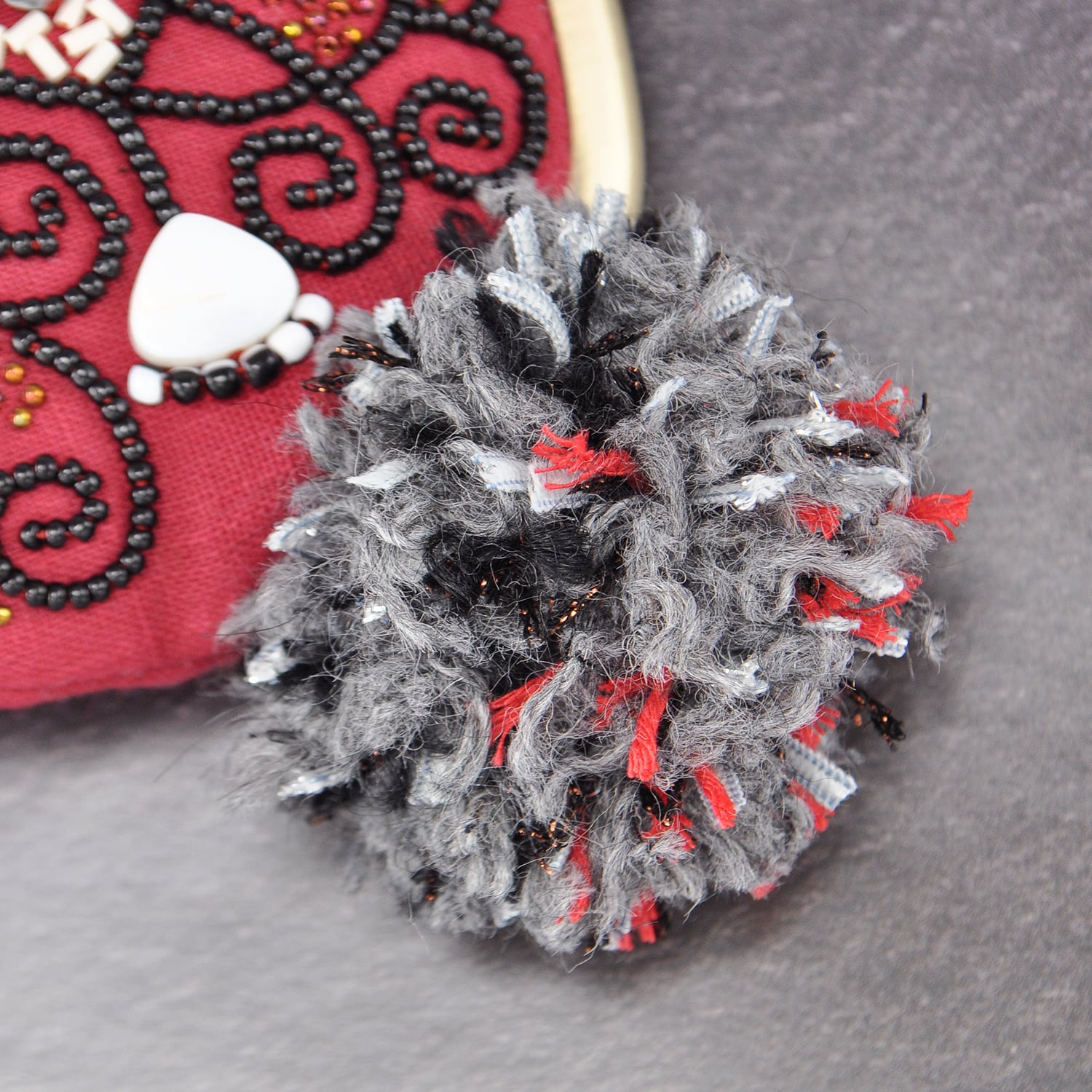 取り扱い注意:素材の特性上摩擦や雨により生地が毛羽立ったりビーズが退色したりする場合があります。