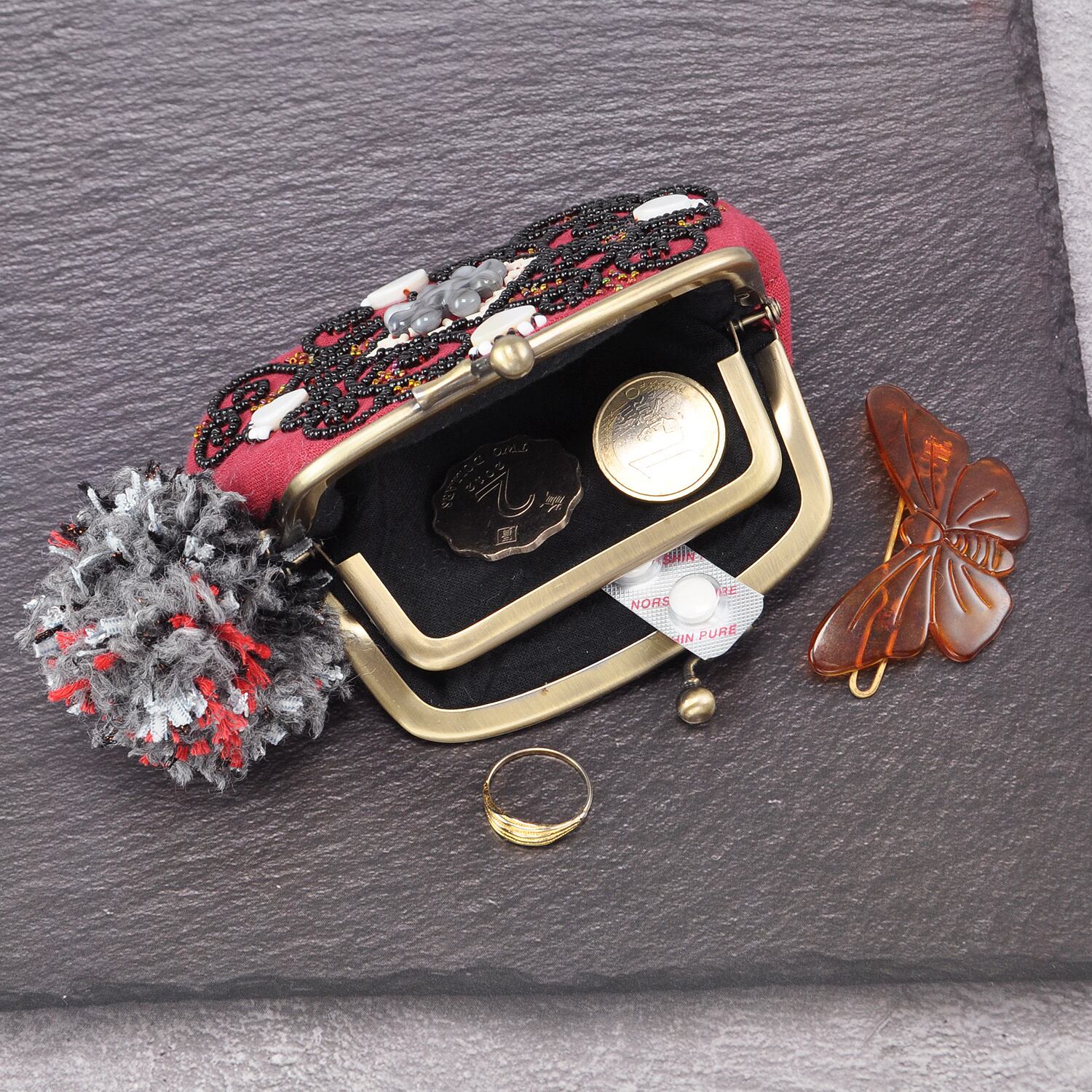 アクセサリーや薬、飴や小銭などちょっとしたものを入れるのに丁度いいサイズです。