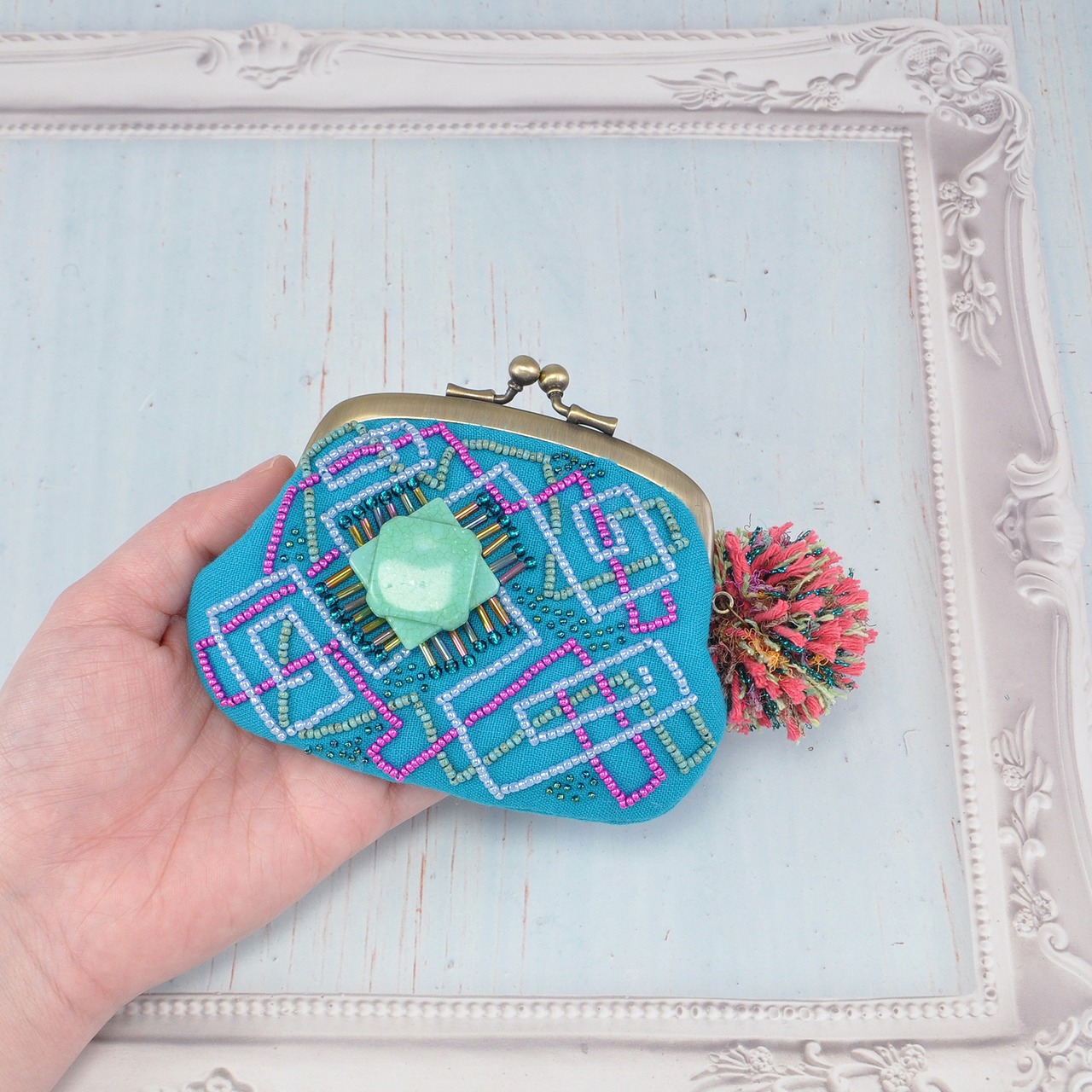 取り扱い注意:素材の特性上摩擦や雨により生地が毛羽立ったりビーズが退色したりする場合があります。
