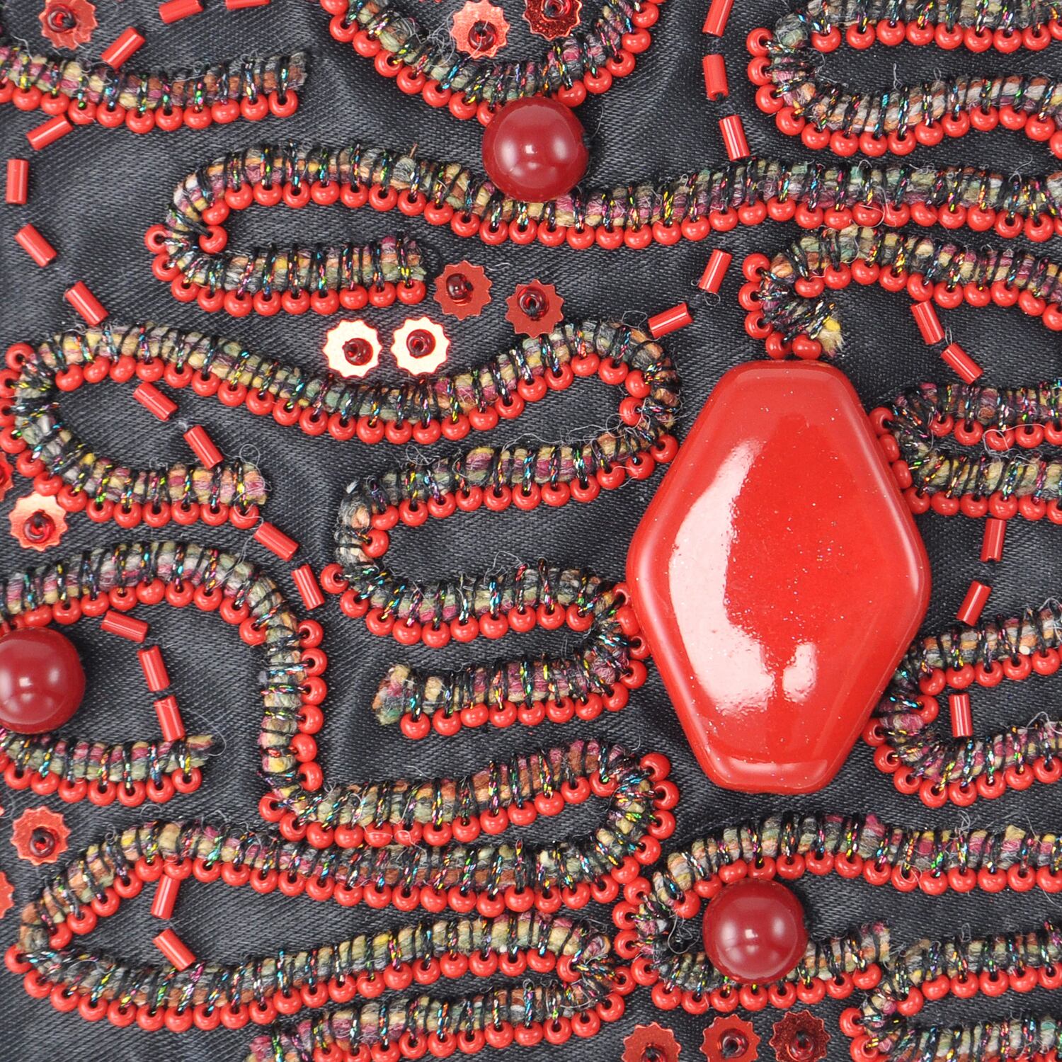 キルト芯を貼った生地に様々なビーズで細かな刺繍を施しました。