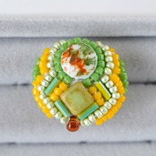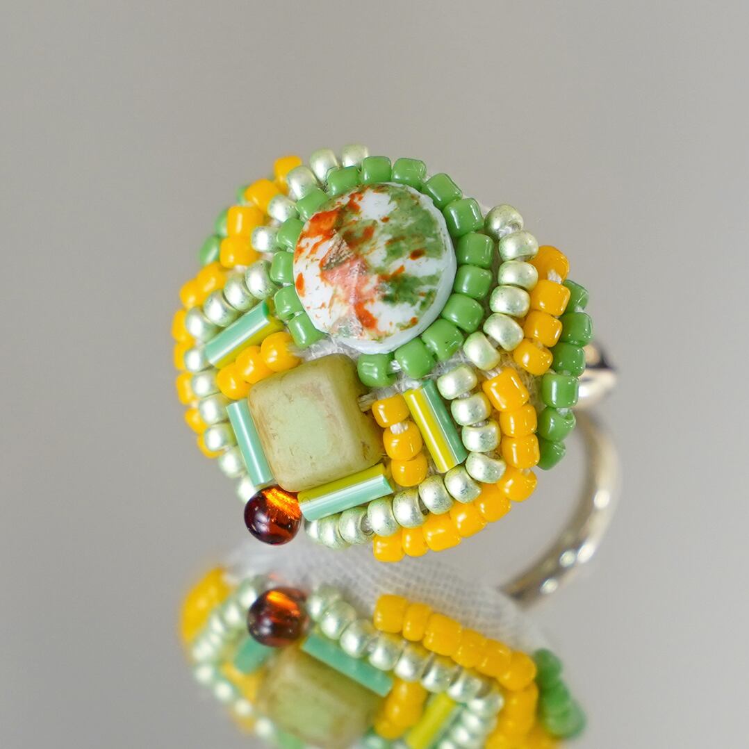 おしゃべりな指輪30 フリーサイズ ビーズ刺繍のリング まる グリーン オレンジ カラフル マルチカラー ビタミンカラー