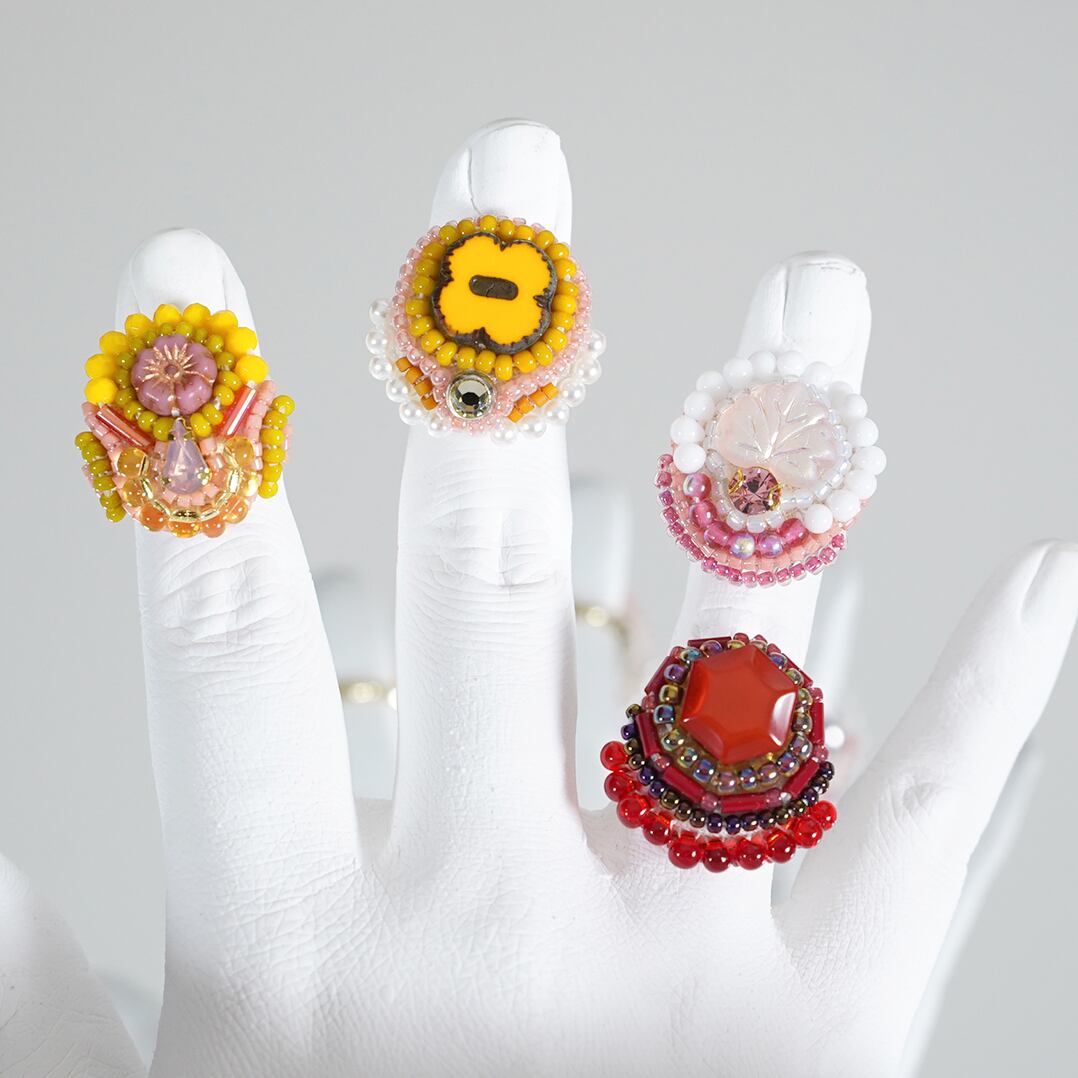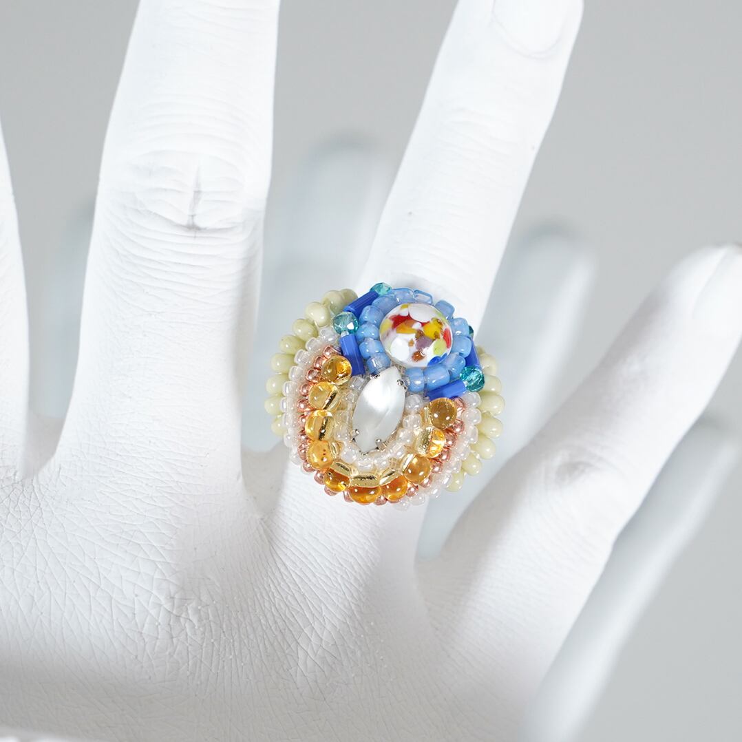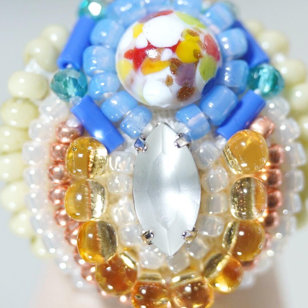 おしゃべりな指輪 86フリーサイズ ビーズ刺繍のリング カラフル マルチカラー