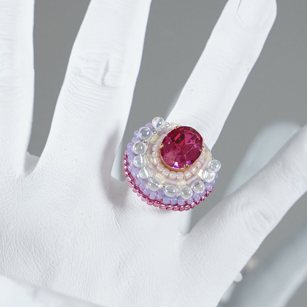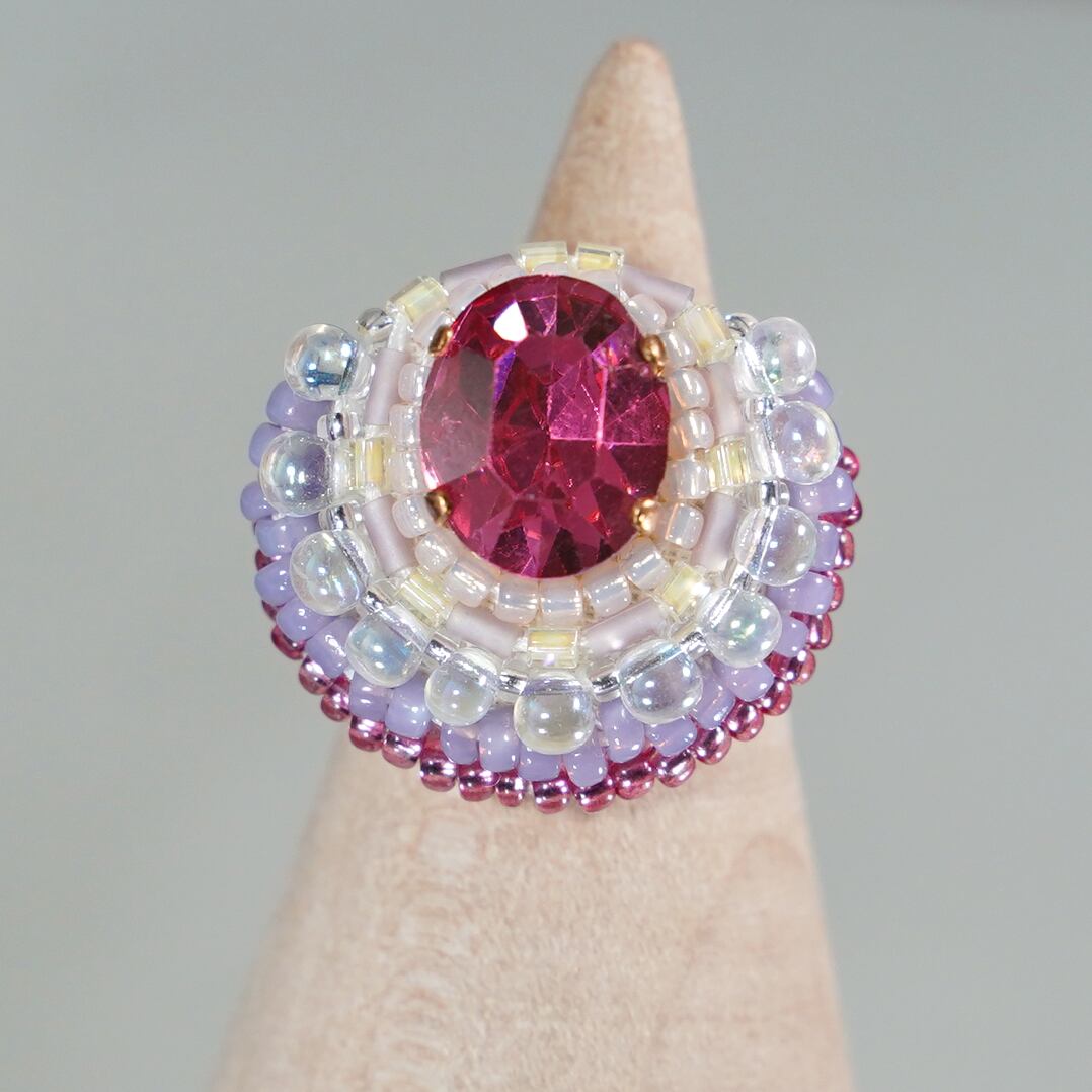 おしゃべりな指輪94 フリーサイズ ビーズ刺繍のリング ピンク パープル
