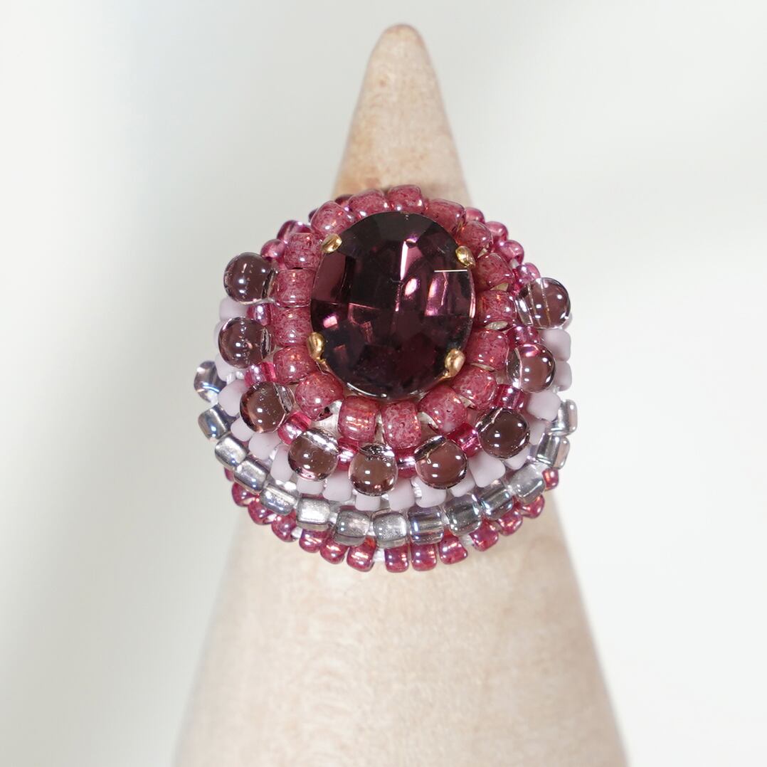 おしゃべりな指輪96 フリーサイズ ビーズ刺繍のリング パープル バーガンディ