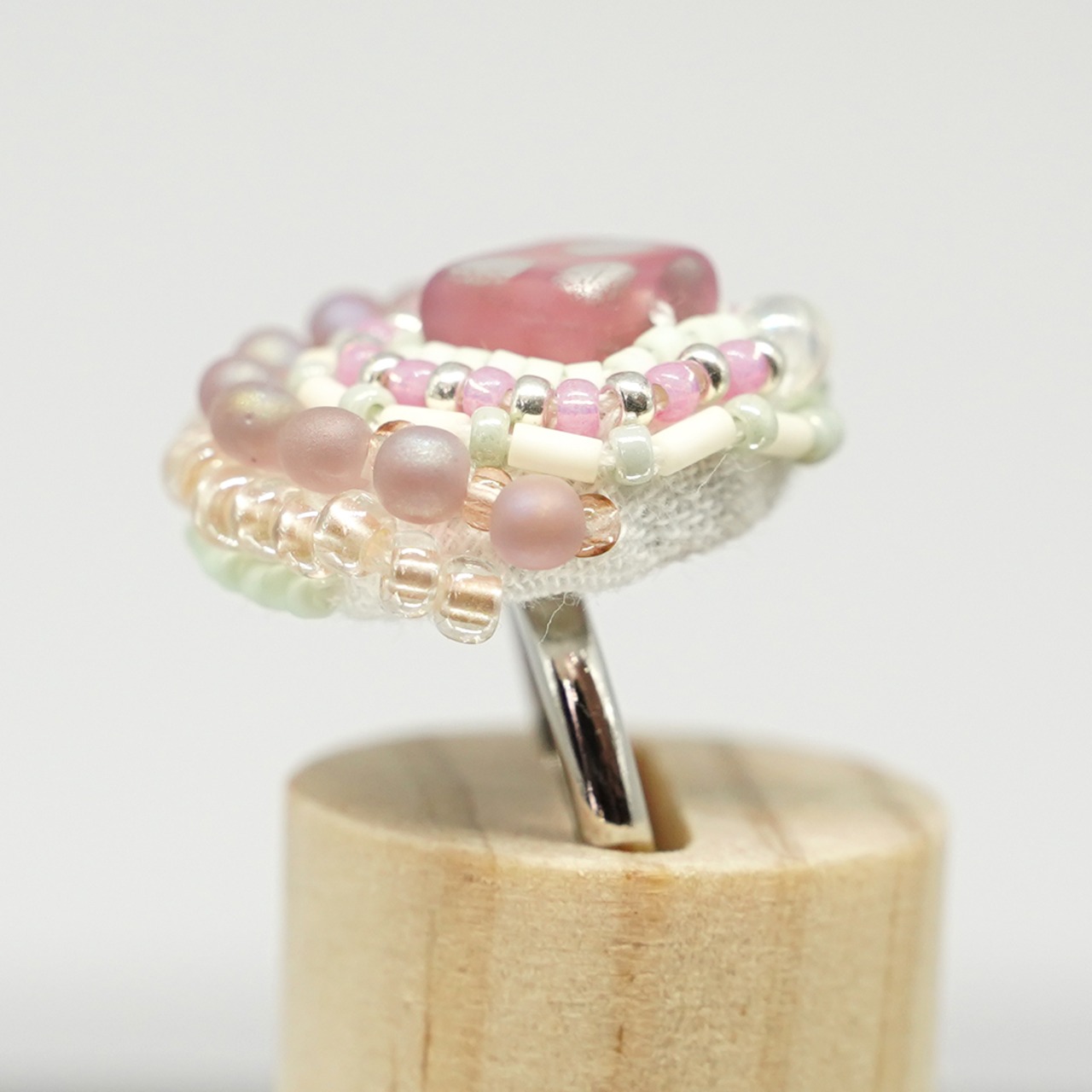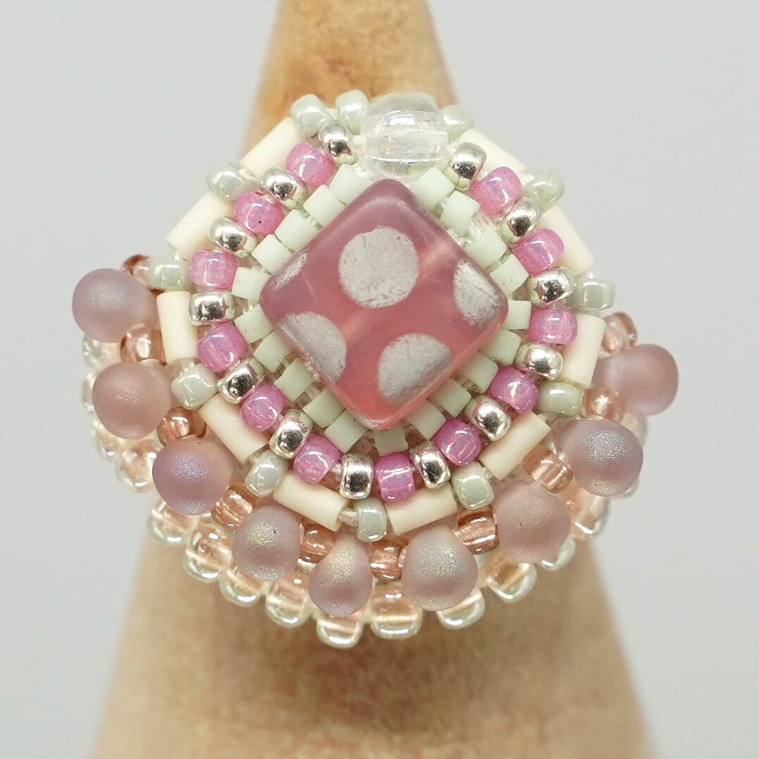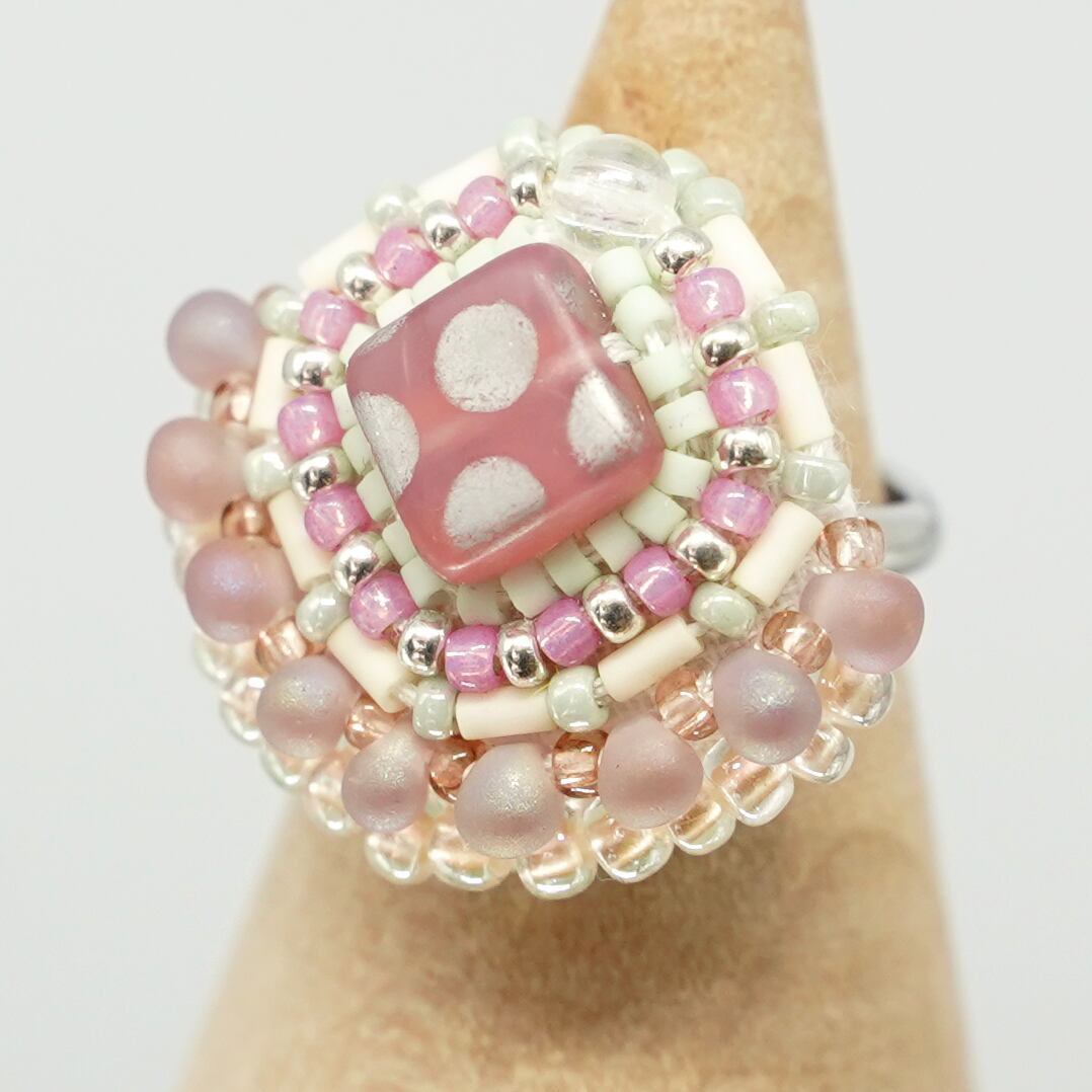 スカーフ留めにも!おしゃべりな指輪129 フリーサイズ ビーズ刺繍のリング ドット おおぶりリング