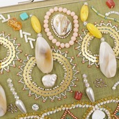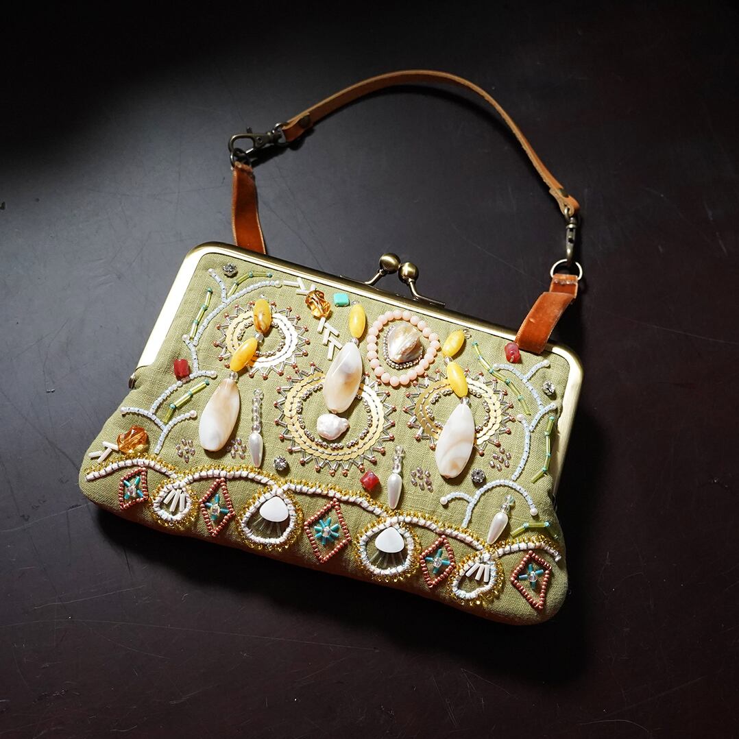 素材:ガーゼ、ビーズ、変わり糸、貝ビーズ、ビジュー、金糸、金属等