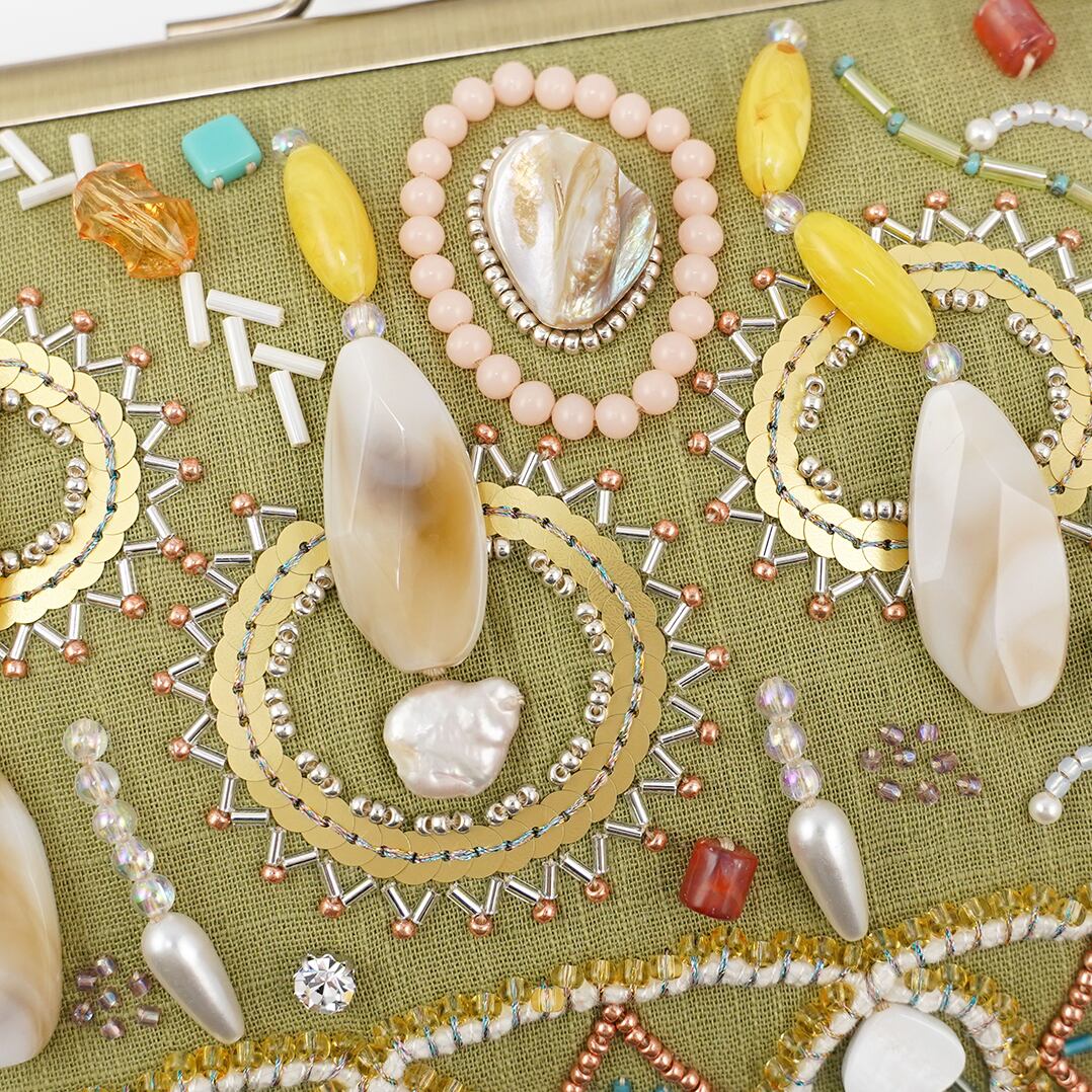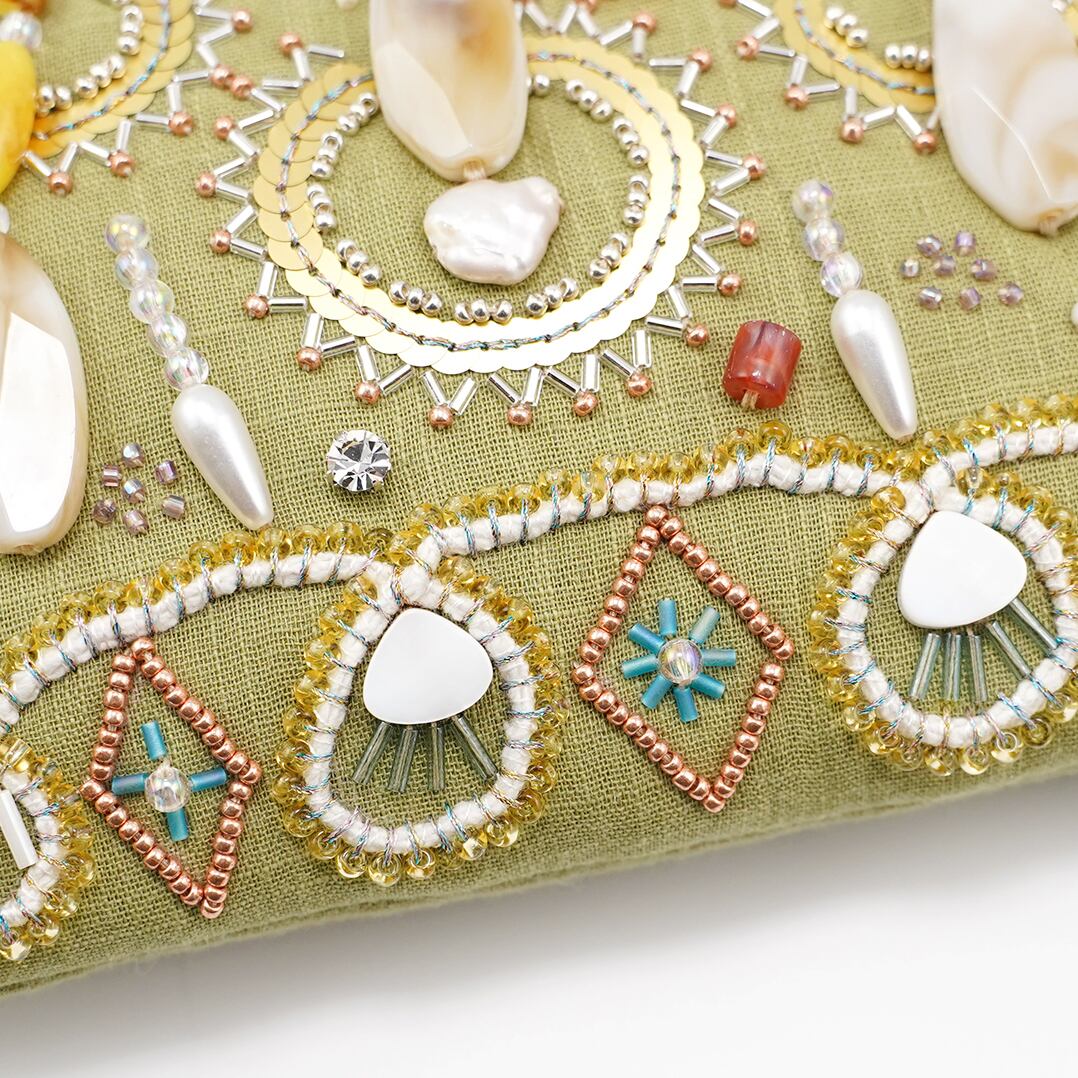 取り扱い注意:素材の特性上摩擦や雨により生地が毛羽立ったりビーズが退色したりする場合があります。
