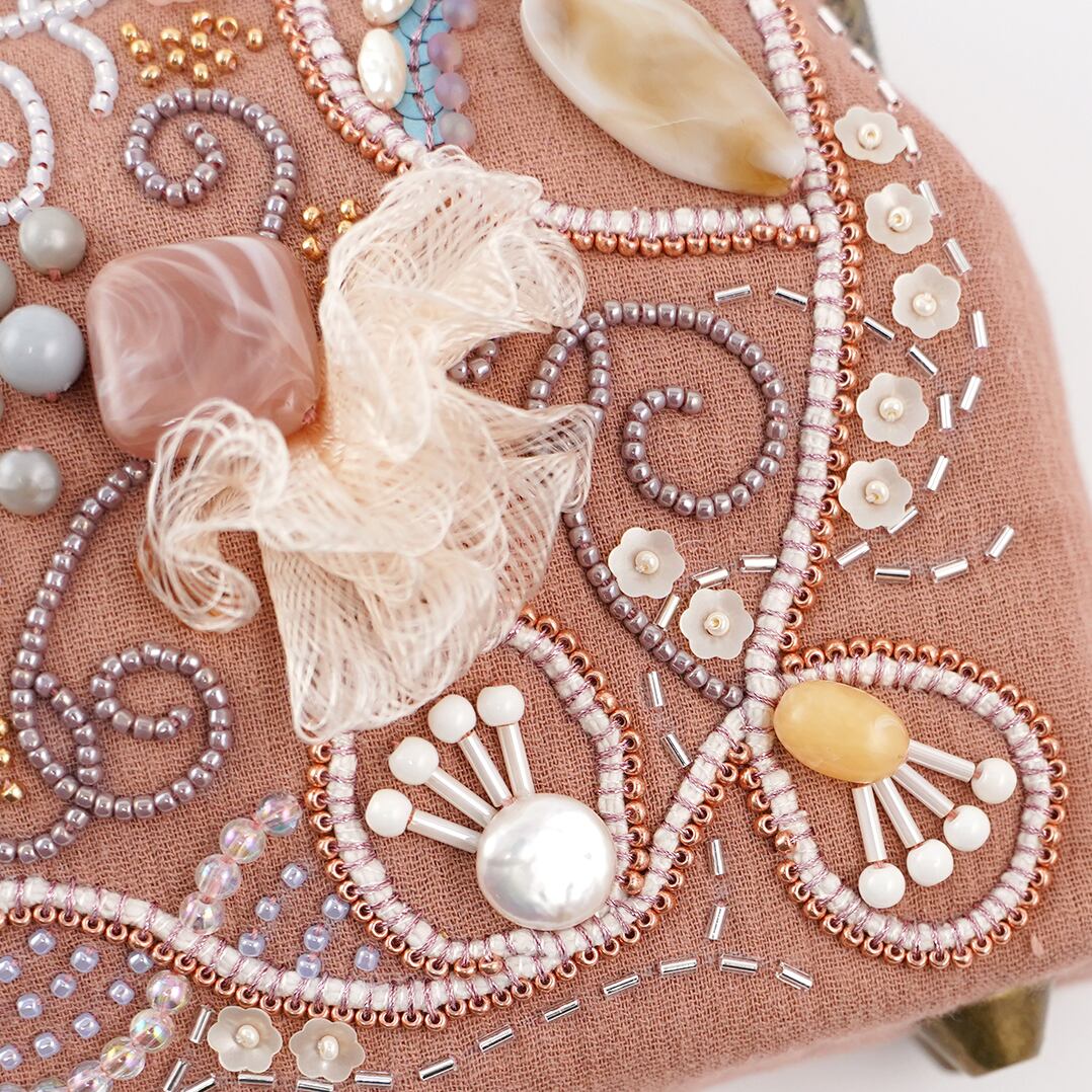 素材:ガーゼ、ビーズ、変わり糸、淡水パール、金糸、金属等