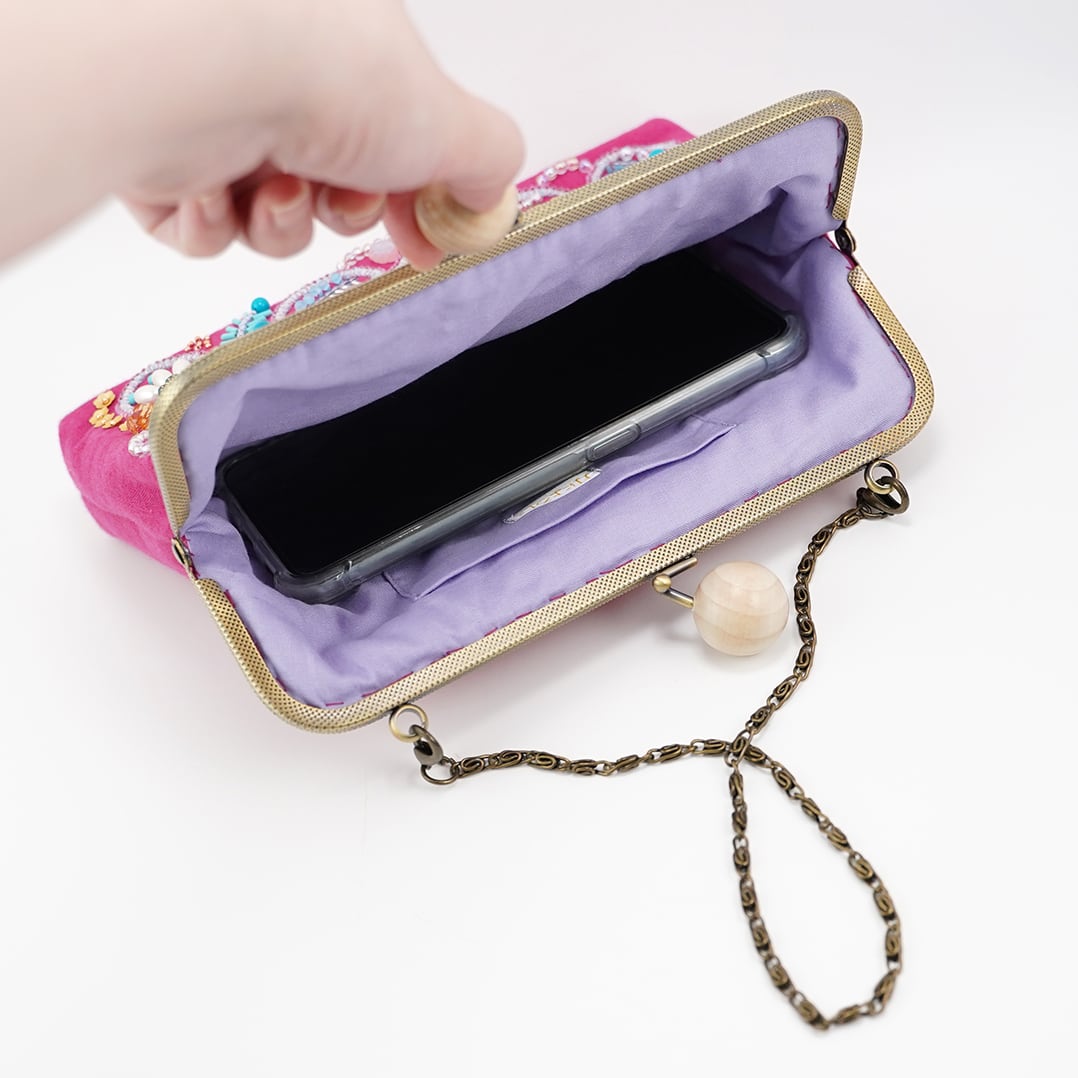表の刺繍はもちろん中の生地の色も華やかです。
