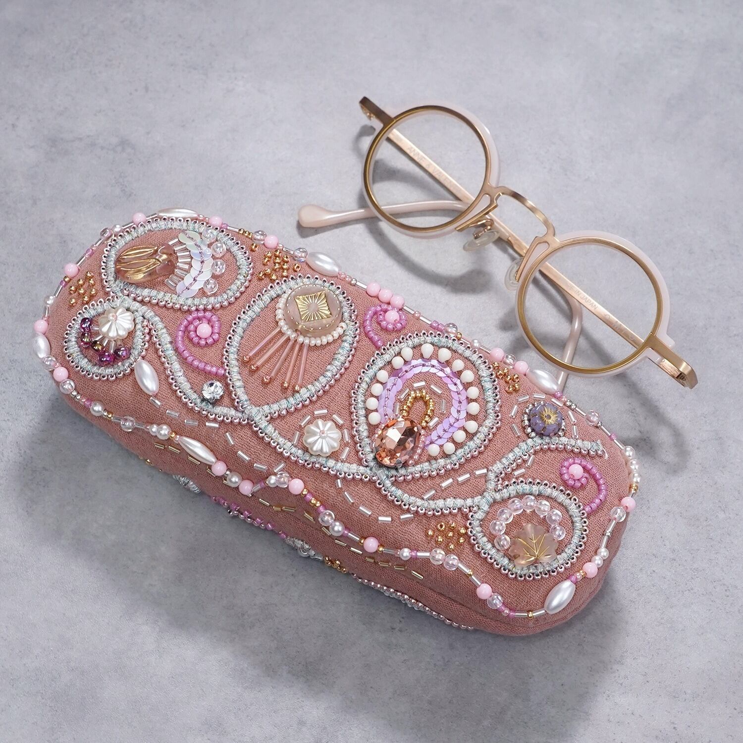 せっかくなら気分も上がる、とっておきの眼鏡ケースを作ろうと、一つ一つ手刺繍で制作した一点物です。