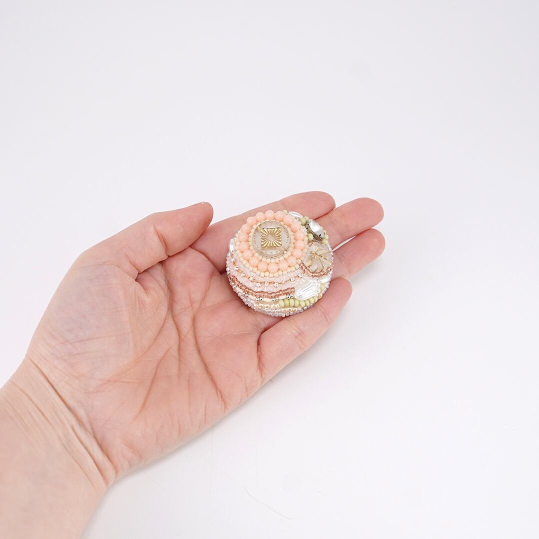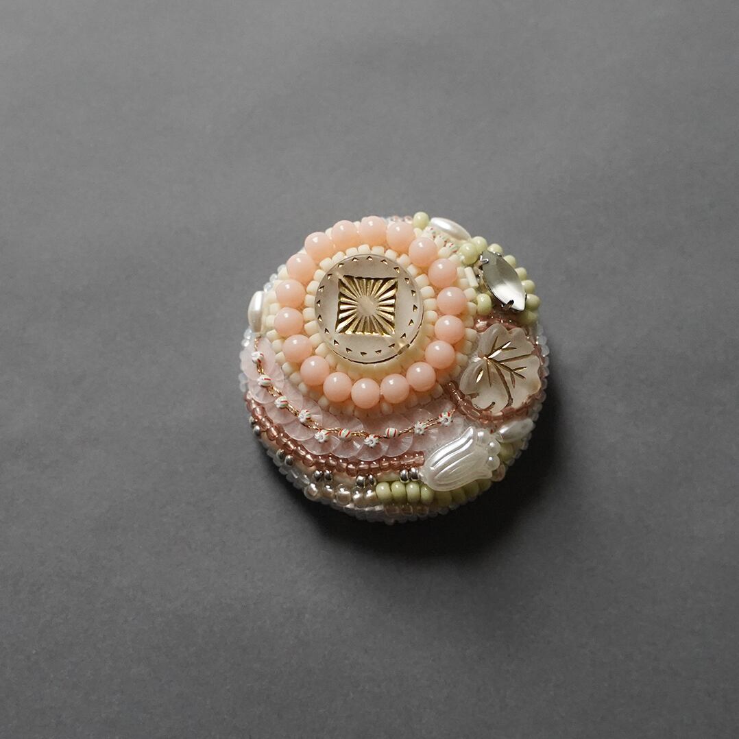 隙間無くきっちりビーズで刺繍を施し、宝箱を開けたようなブローチに仕上がりました。