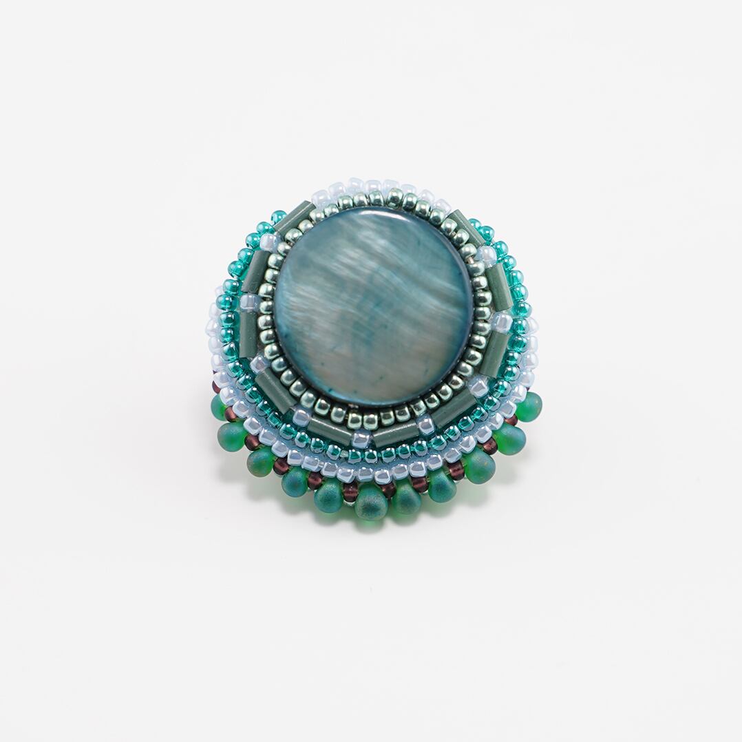 そのビーズを引き立てるように隙間なく刺繍をすると、カラフルでにぎやかで、まるでおしゃべりをしているように仕上がります。