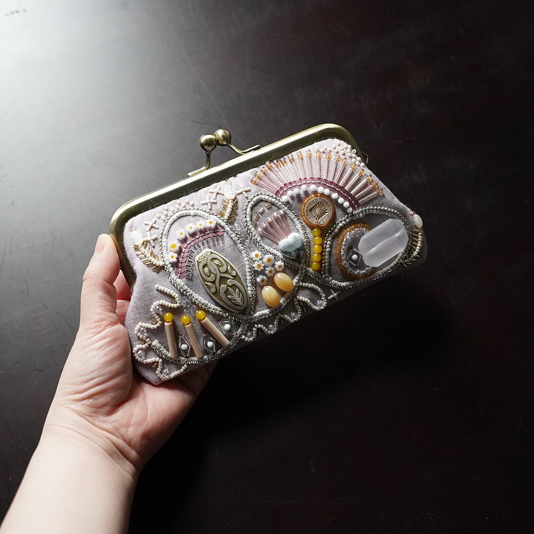 丈夫なポーチが活躍する日常も素敵ですが、 特別な日には、繊細な刺繍が施された小さながま口をそっとバッグに忍ばせたくなります。