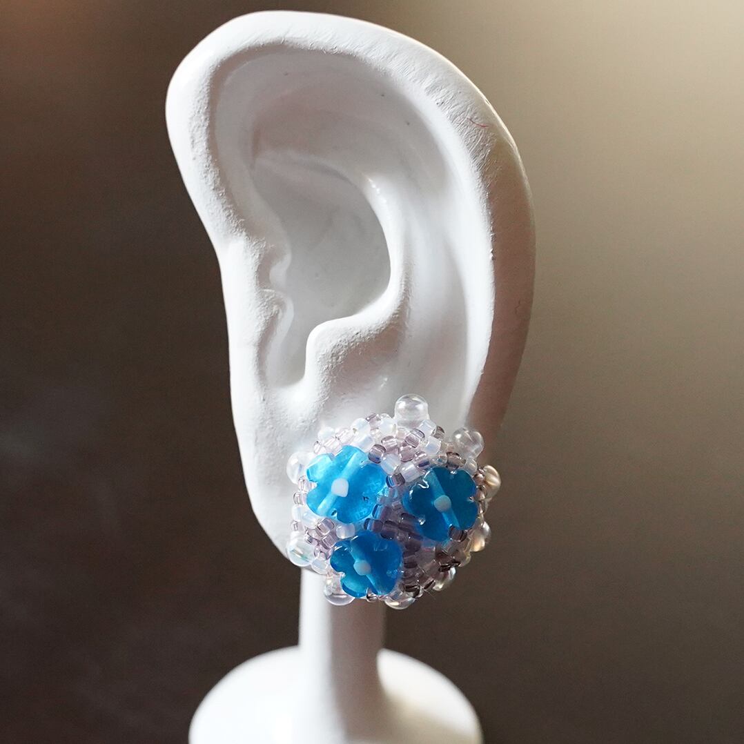 キッチン5 イヤリング ピアス ビーズ刺繍 ブルー パープル クリア おおぶり