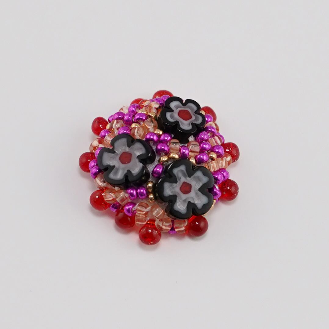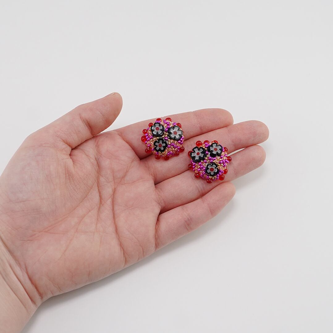 キッチン10 イヤリング ピアス ビーズ刺繍 ピンク ブラック レッド おおぶり