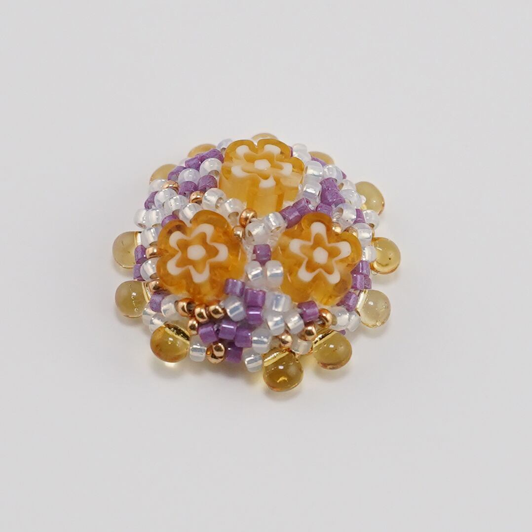 キッチン11 イヤリング ピアス ビーズ刺繍 オレンジ パープル ホワイト おおぶり