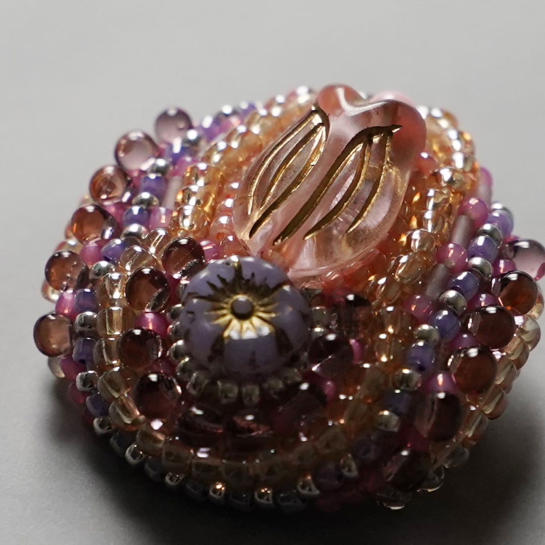 そのビーズを引き立てるように隙間なく刺繍をすると、カラフルでにぎやかで、まるでおしゃべりをしているように仕上がります。