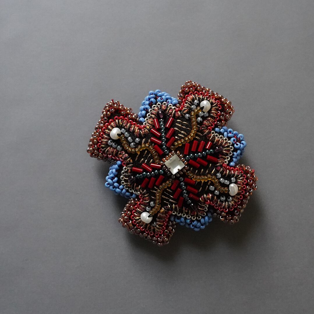 そのビーズを引き立てるように隙間なく刺繍をすると、カラフルでにぎやかで、まるでおしゃべりをしているように仕上がります。